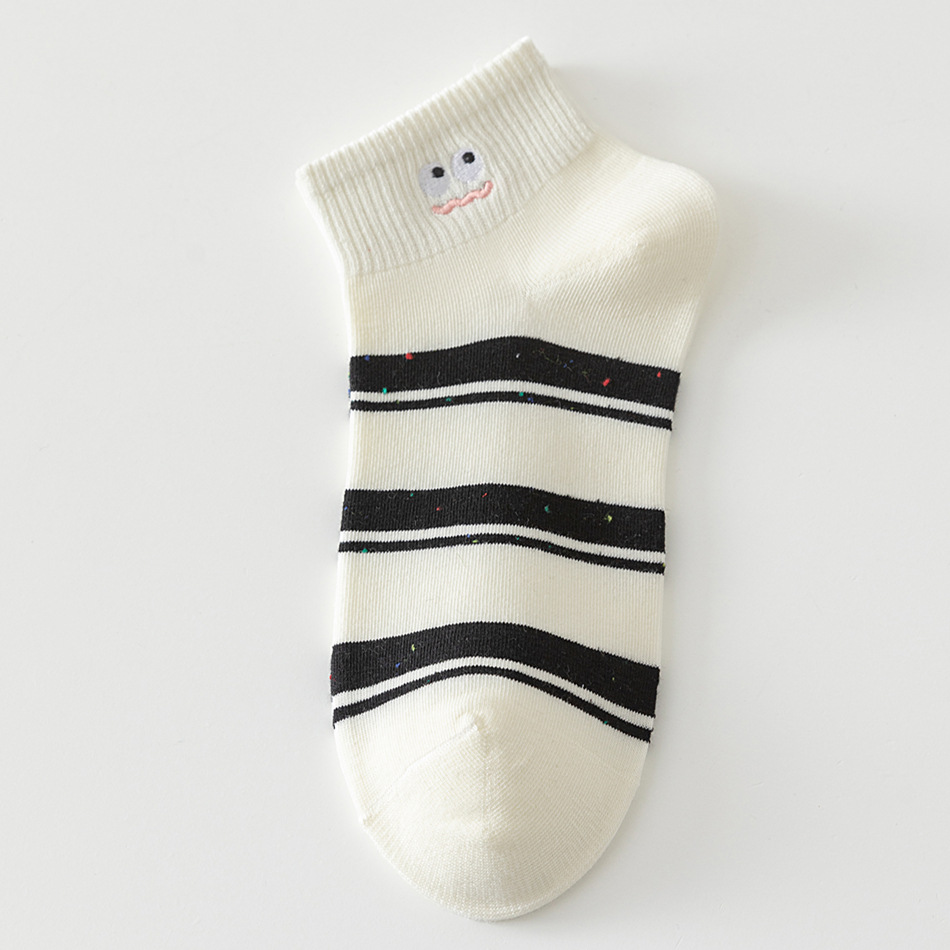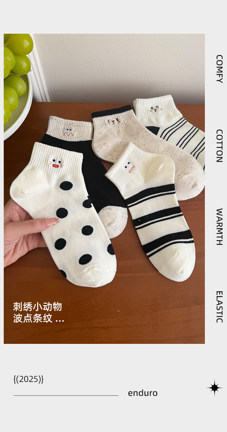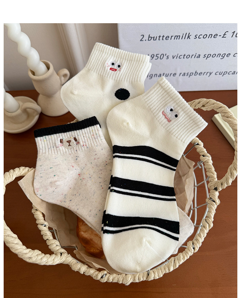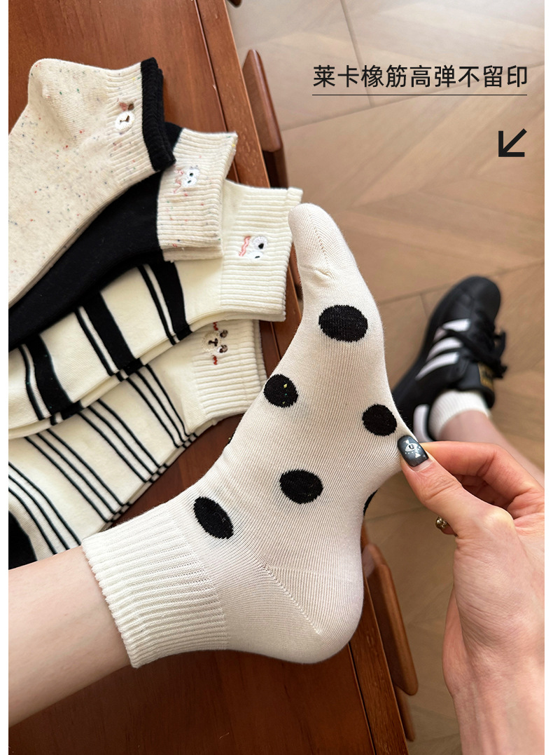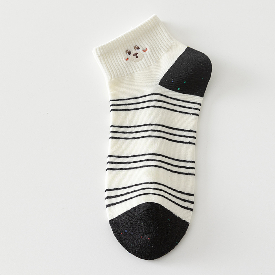 봄 여름 신작 일본 귀여운 강아지 자수 트렌디 스트라이프 종아리 양말 캐주얼 양말 면스토어 가기