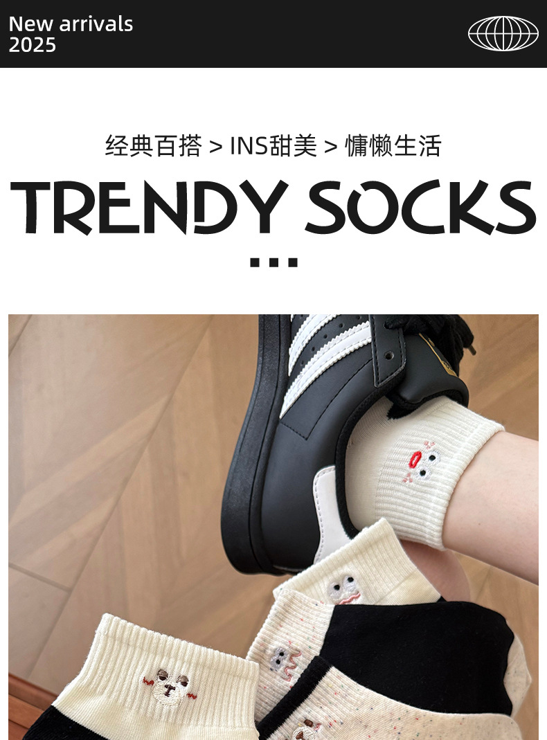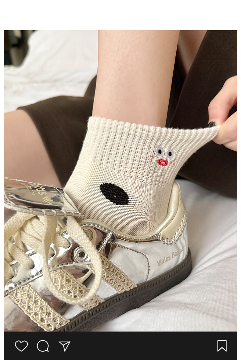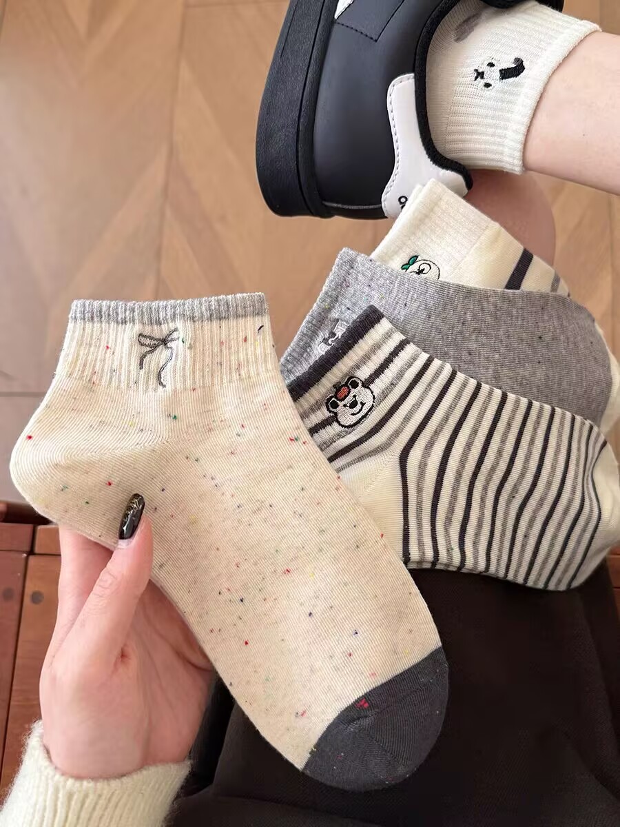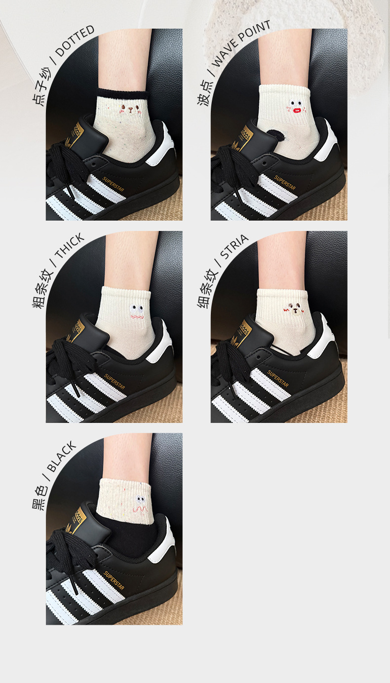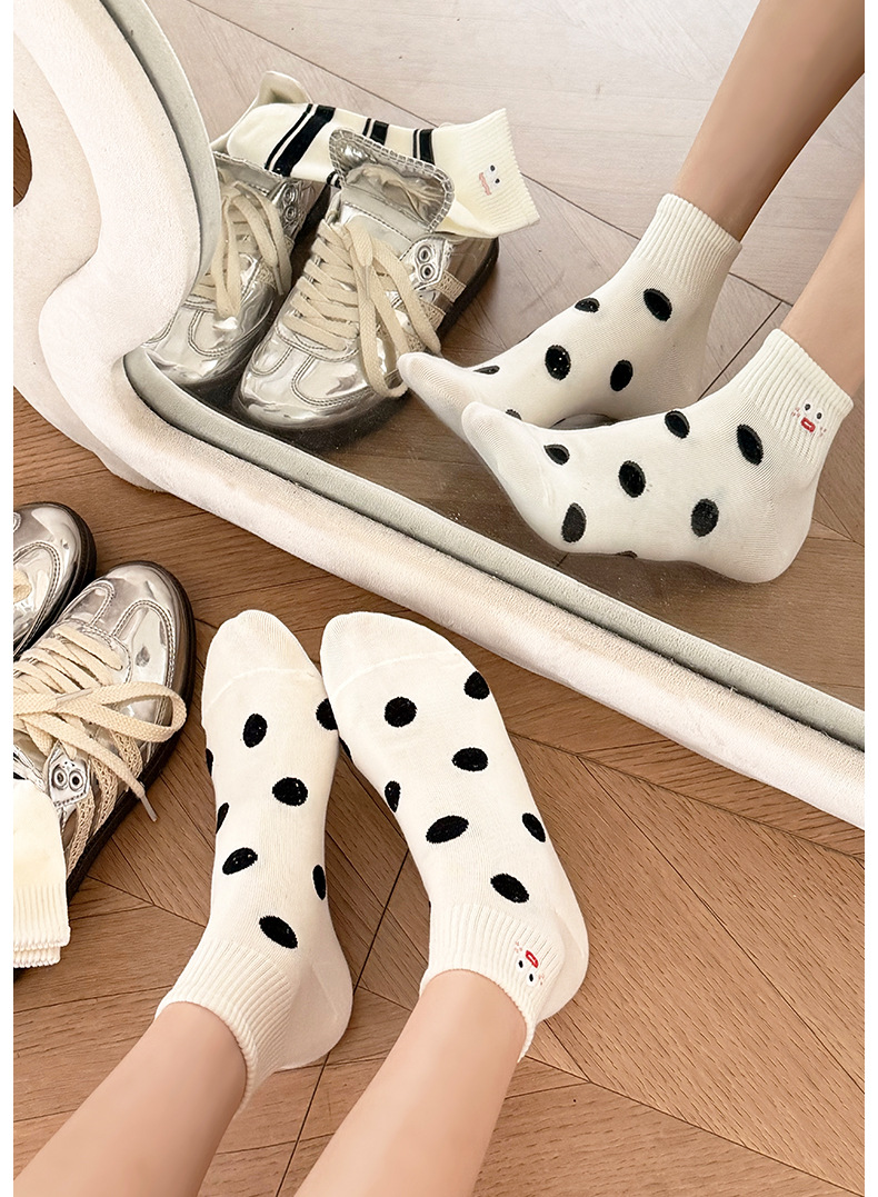 봄 여름 신작 일본 귀여운 강아지 자수 트렌디 스트라이프 종아리 양말 캐주얼 양말 면스토어 가기