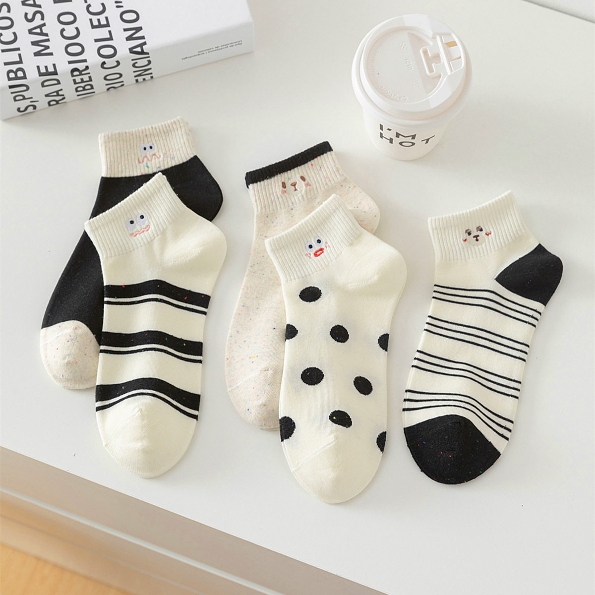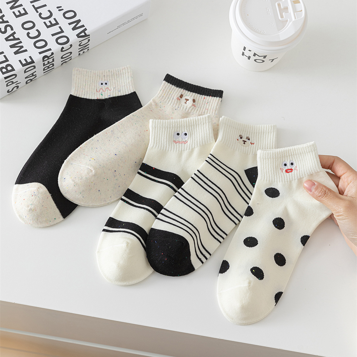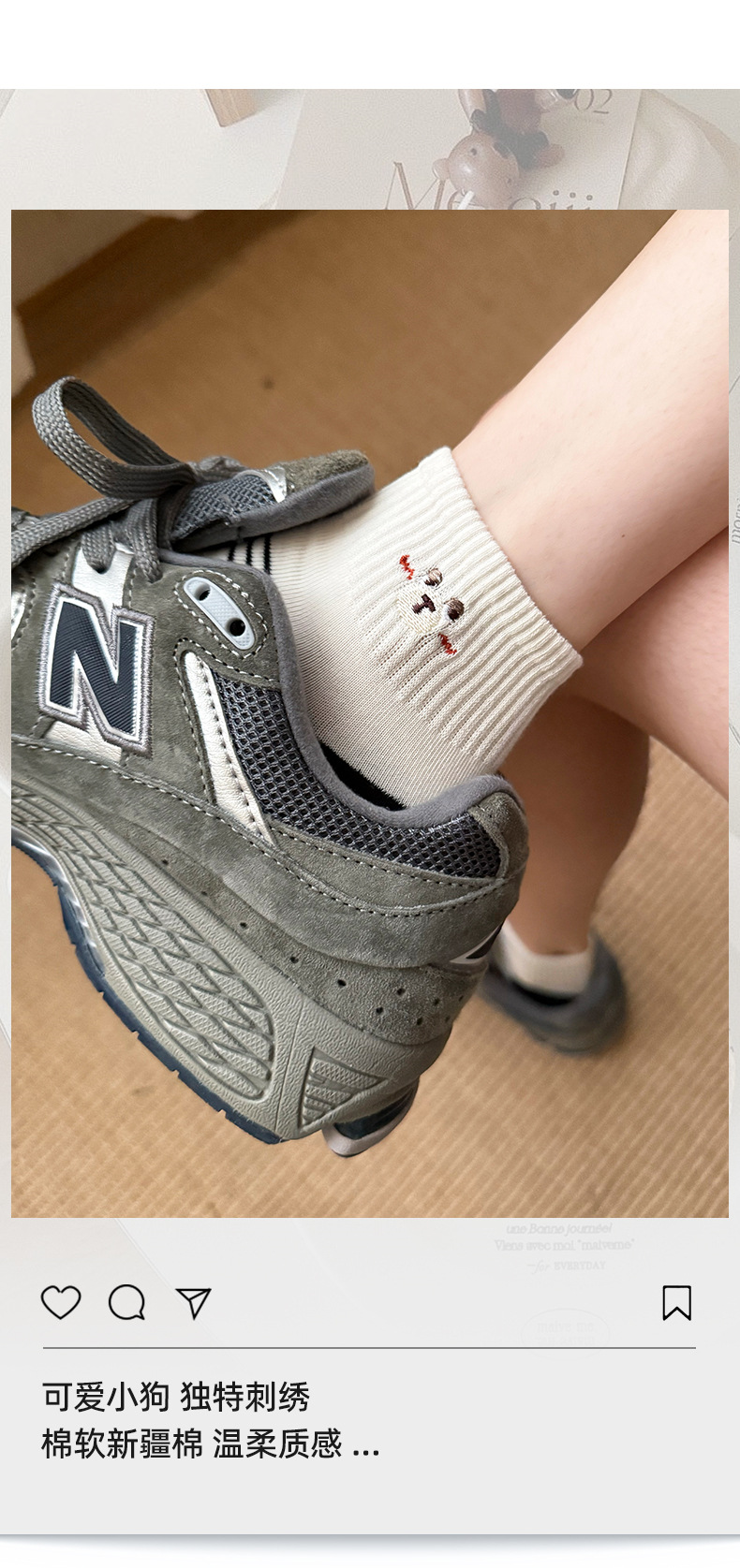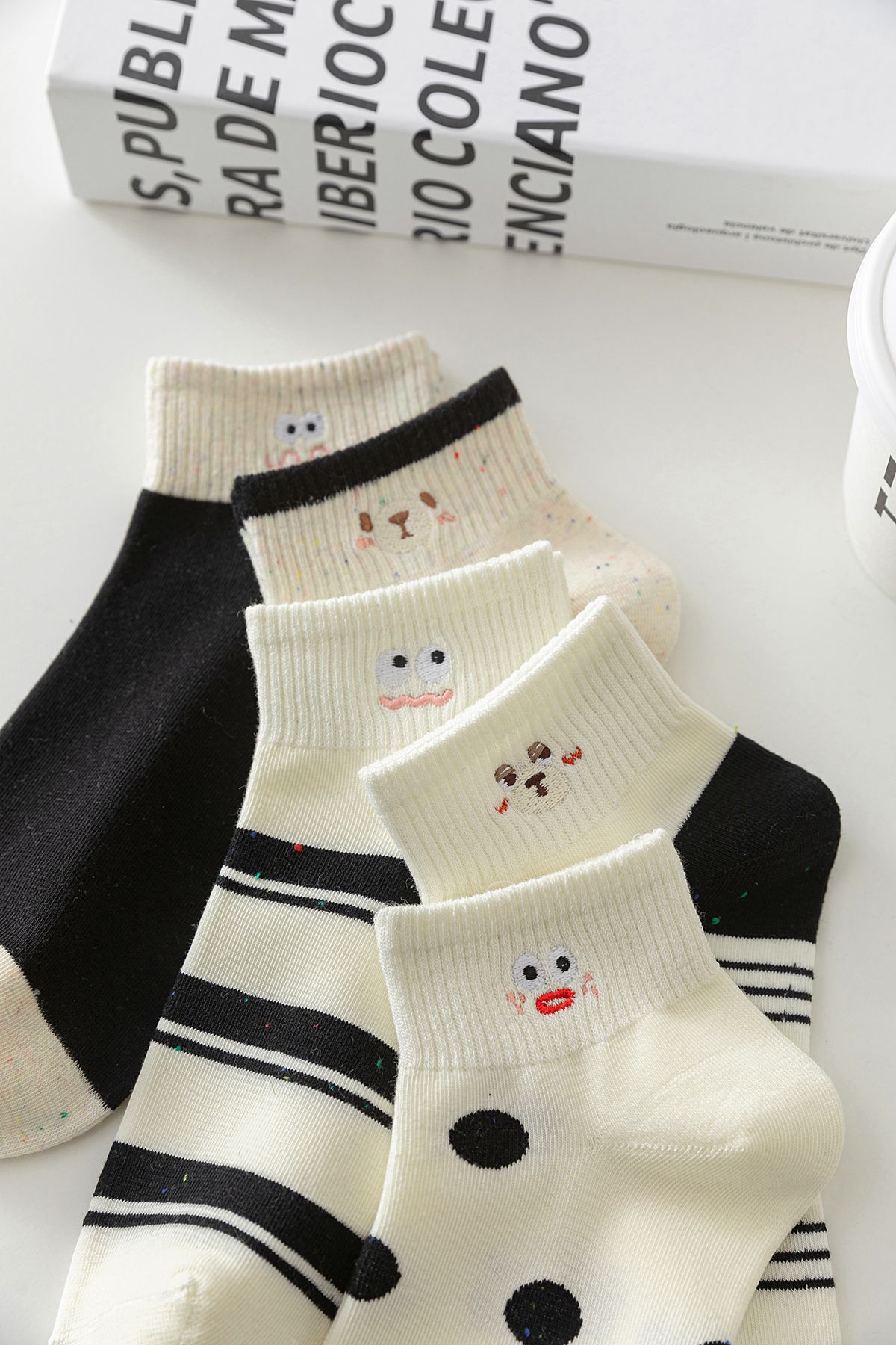 봄 여름 신작 일본 귀여운 강아지 자수 트렌디 스트라이프 종아리 양말 캐주얼 양말 면스토어 가기