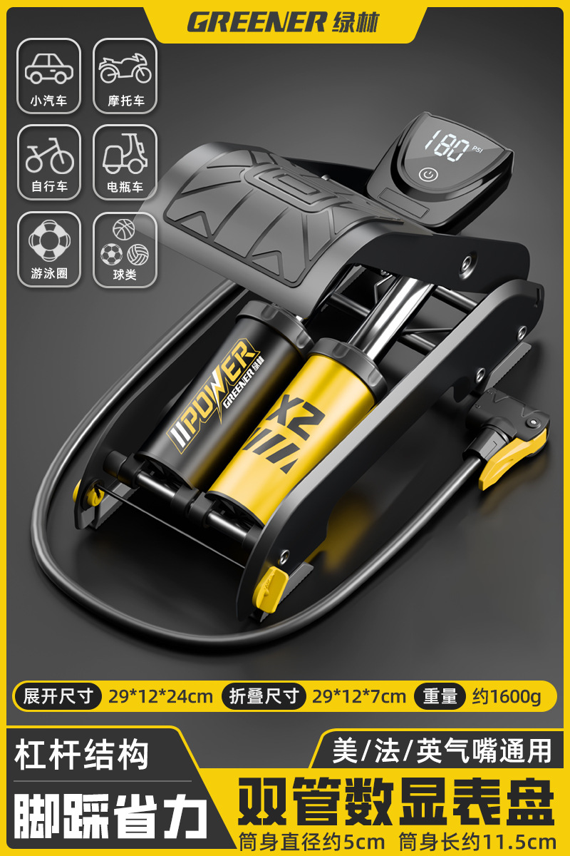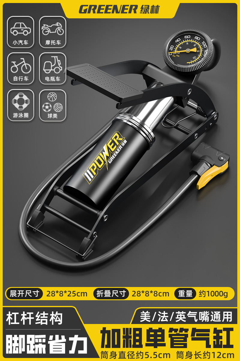 자동차, 자전거, 전기 오토바이, 가정용 자동차 공기 펌프를 위한 Green Forest 풋 펌프스토어 가기