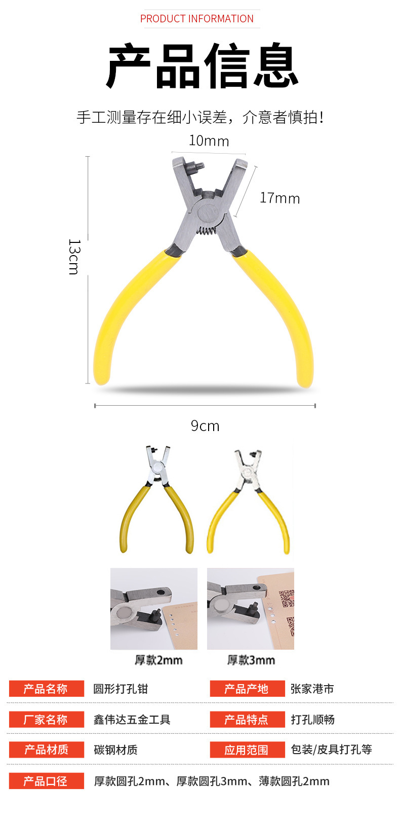 라운드 펀칭 펜치 2mm 오픈 펀칭 펜치 가죽 시계 스트랩 카드 태그 펀칭 펜치 탄소강 라운드 펀칭 펜치