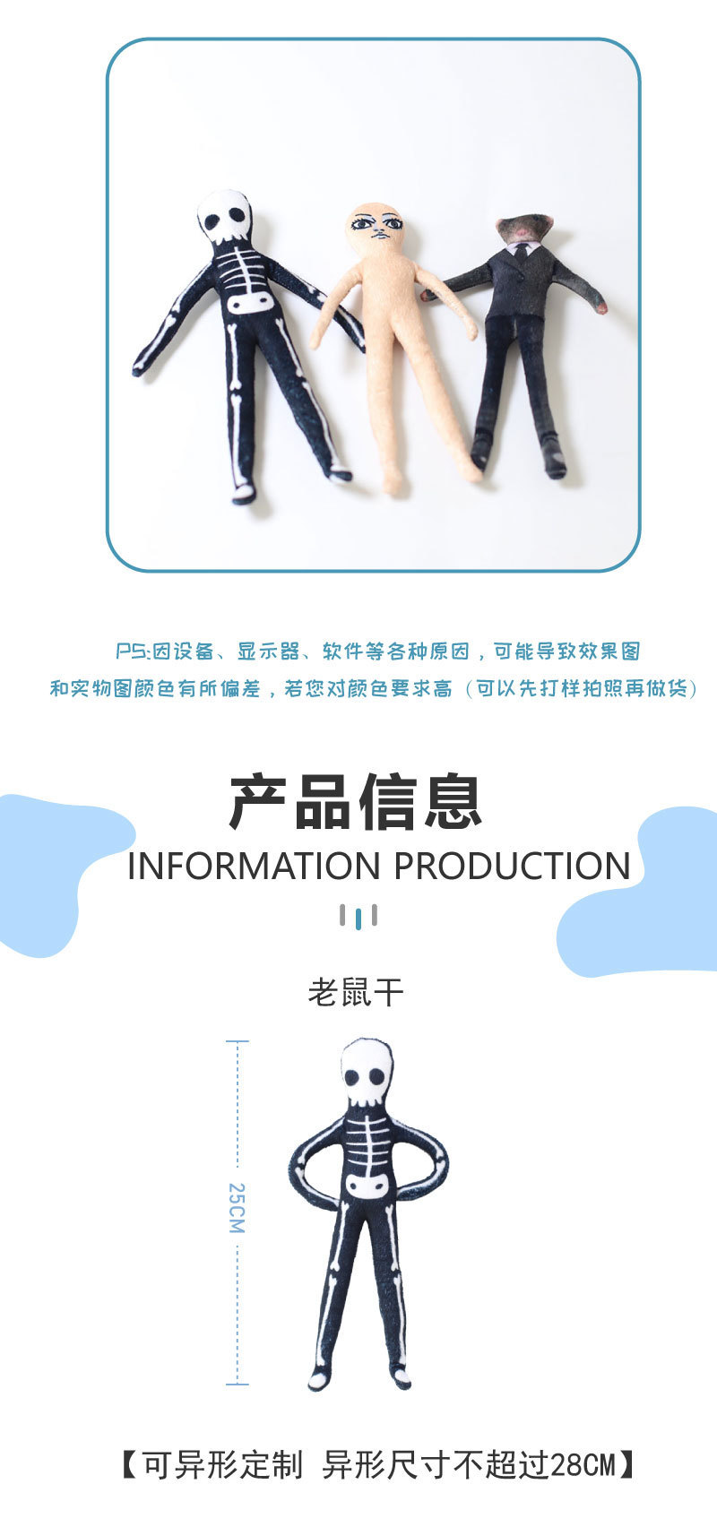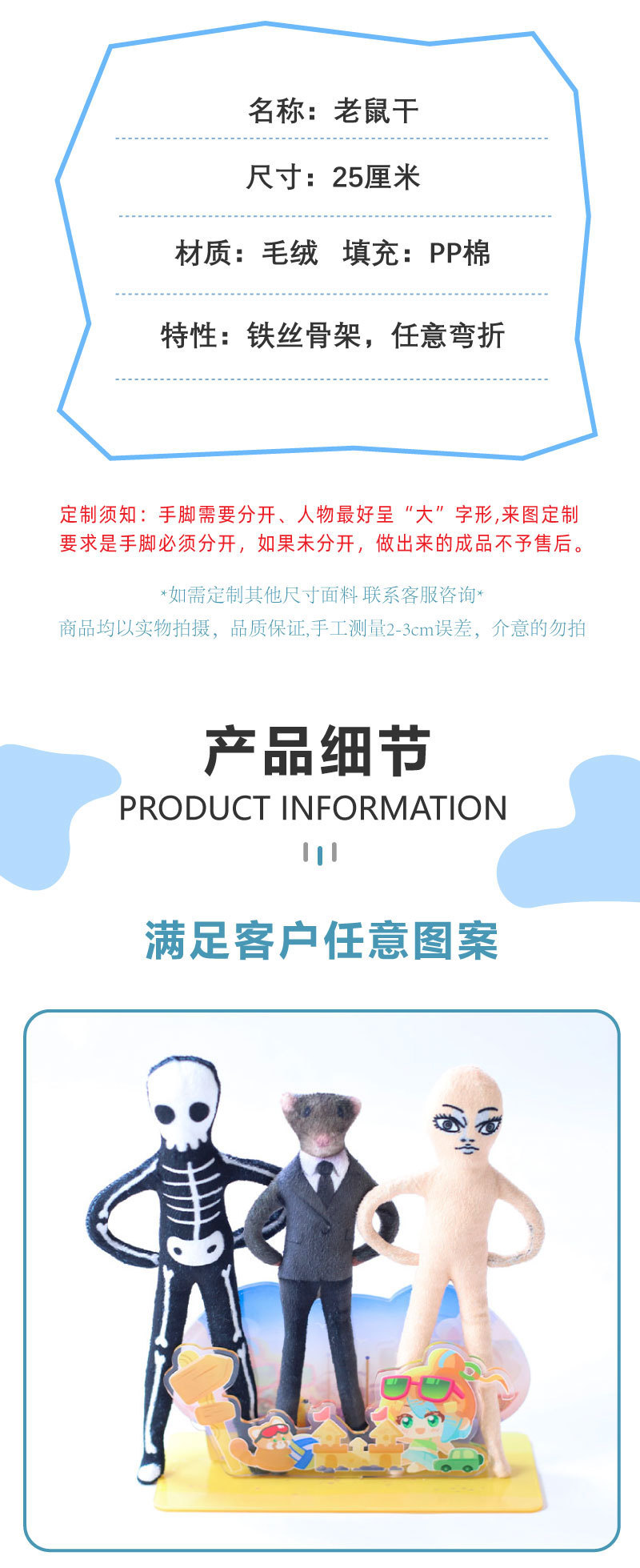 사진으로 맞춤형 철제 와이어 뼈대 추상 인형 만화 애니메이션 주변기기 휴머노이드 마우스 드라이 인형 도매 맞춤형스토어 가기