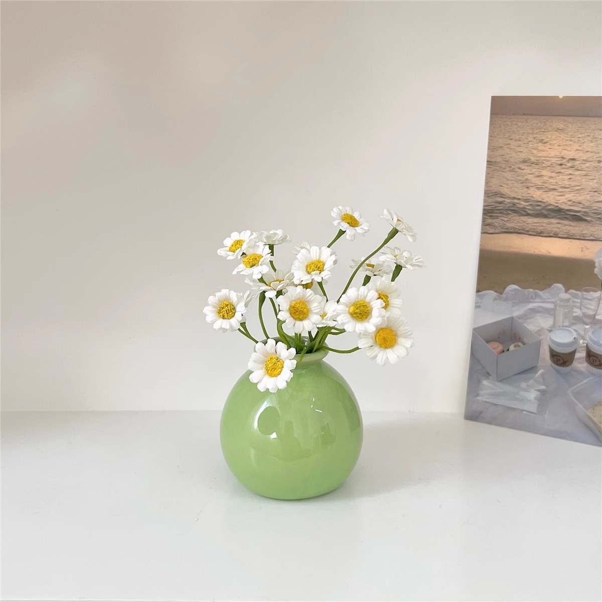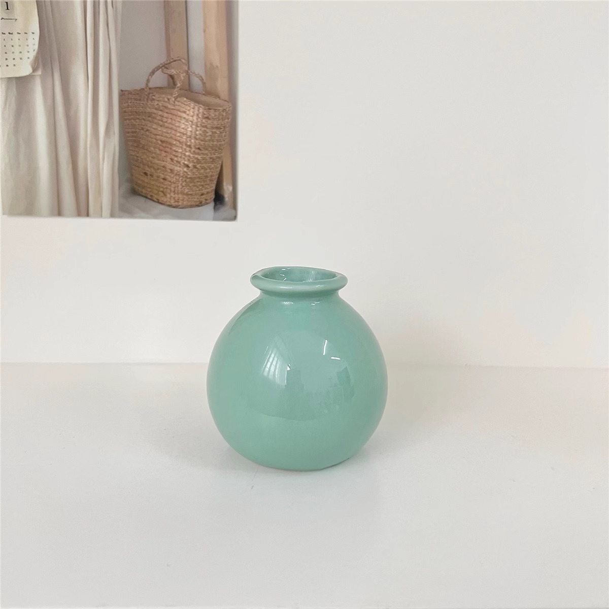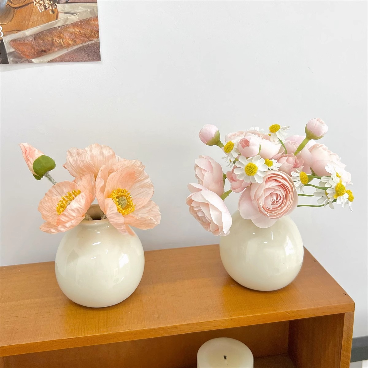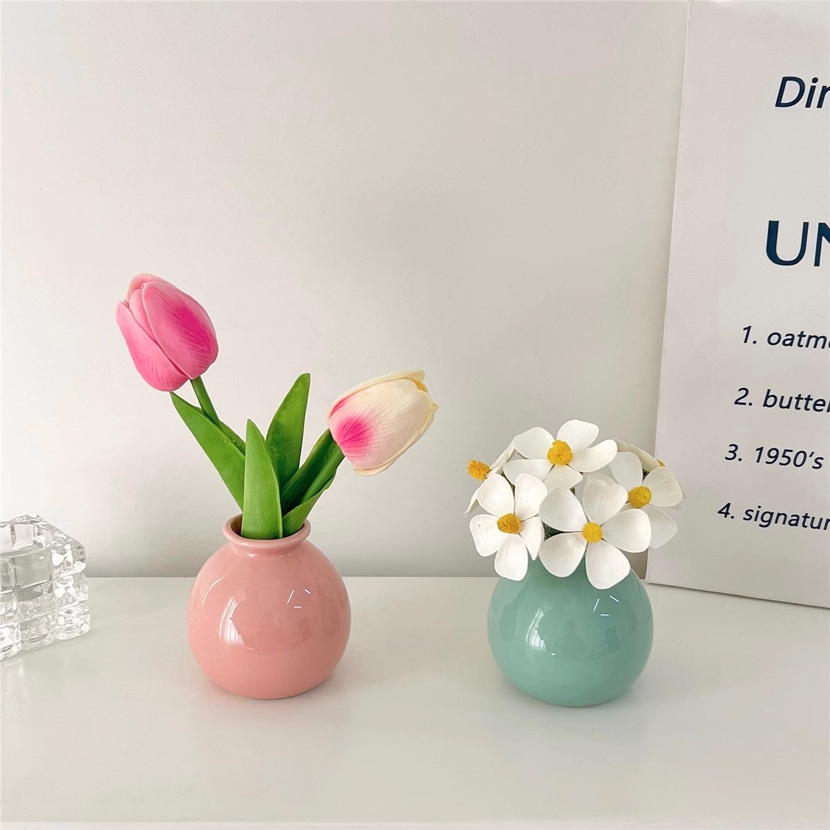 Ins 스타일 넓은 입 다채로운 세라믹 작은 꽃병 말린 꽃 시뮬레이션 꽃 세트 휴일 장식 데스크탑 미니 작은 장식품스토어 가기