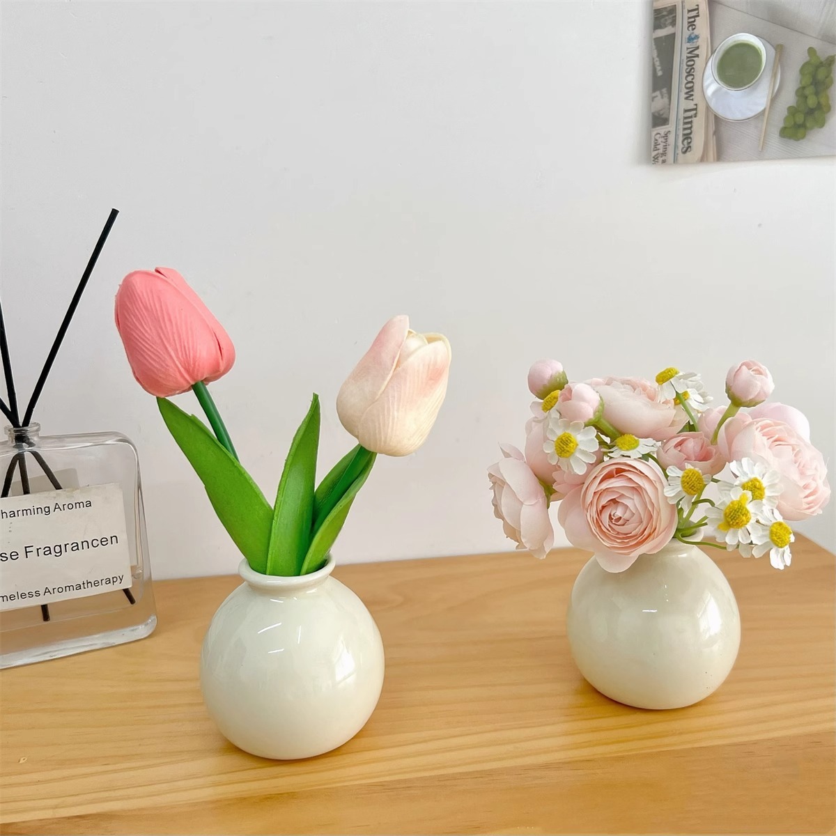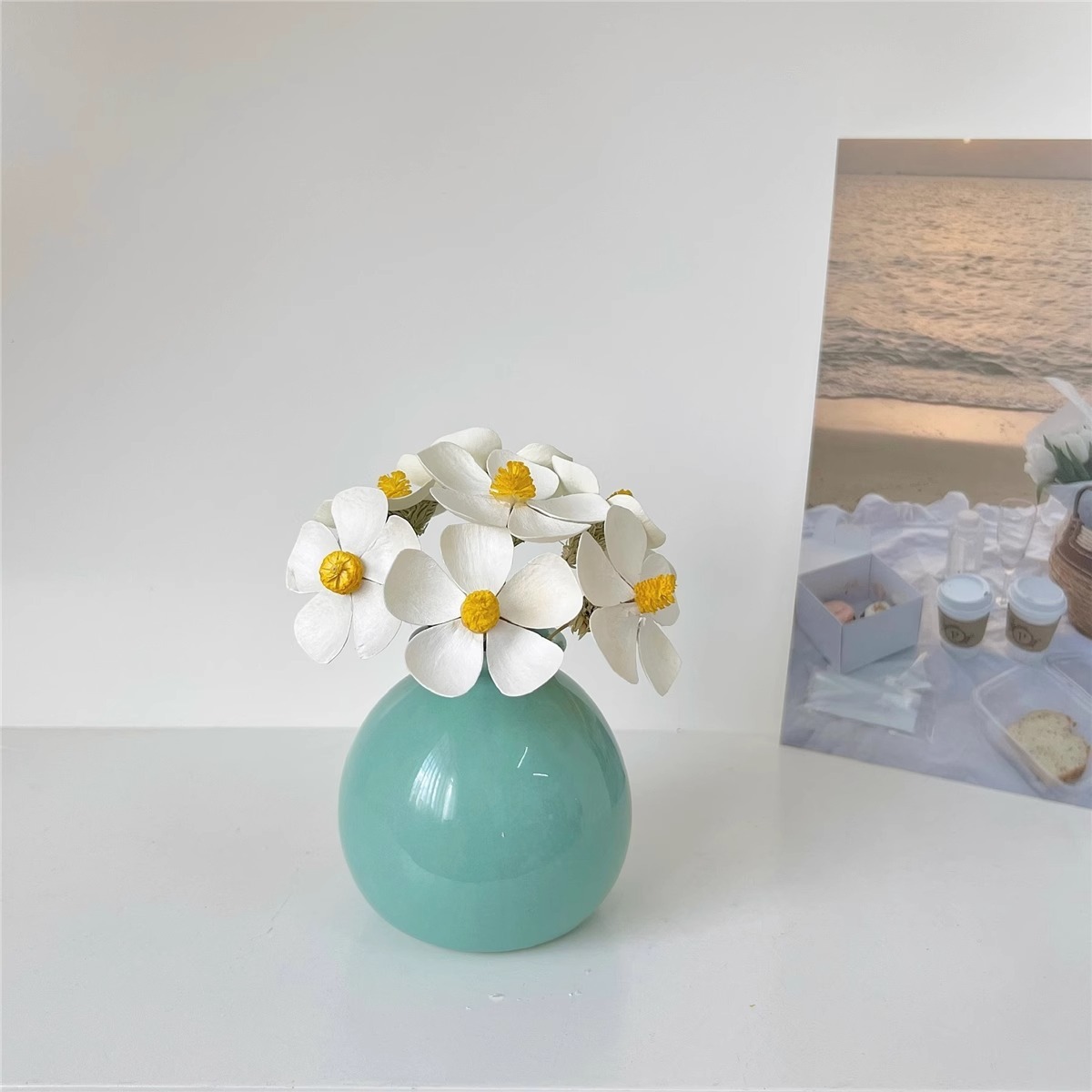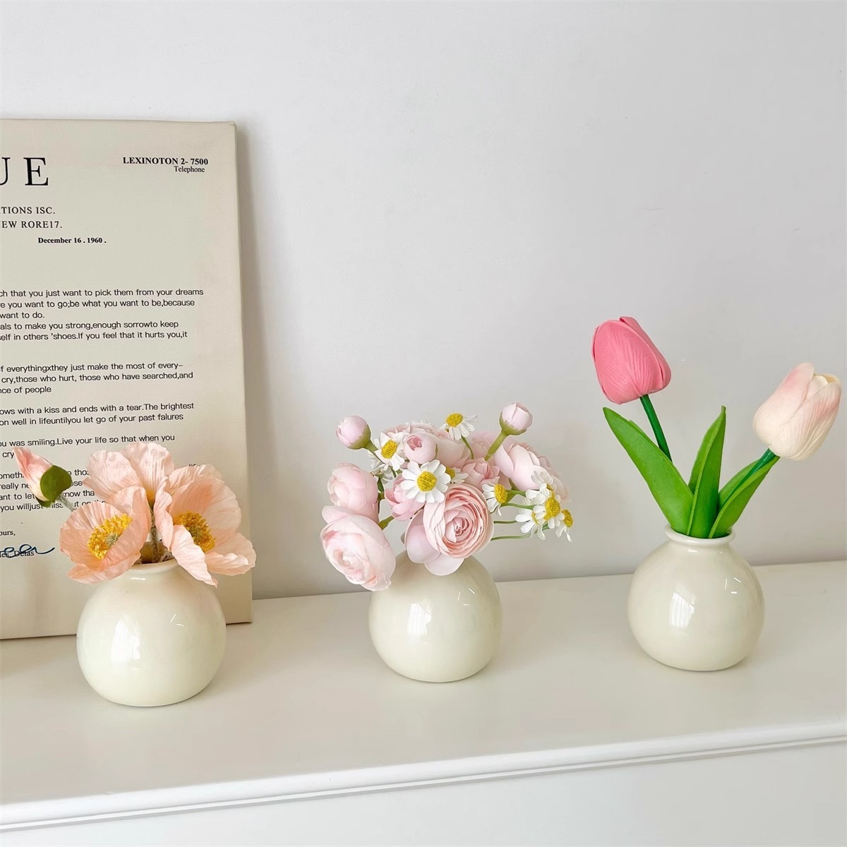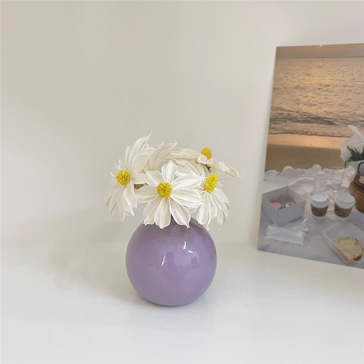 Ins 스타일 넓은 입 다채로운 세라믹 작은 꽃병 말린 꽃 시뮬레이션 꽃 세트 휴일 장식 데스크탑 미니 작은 장식품스토어 가기