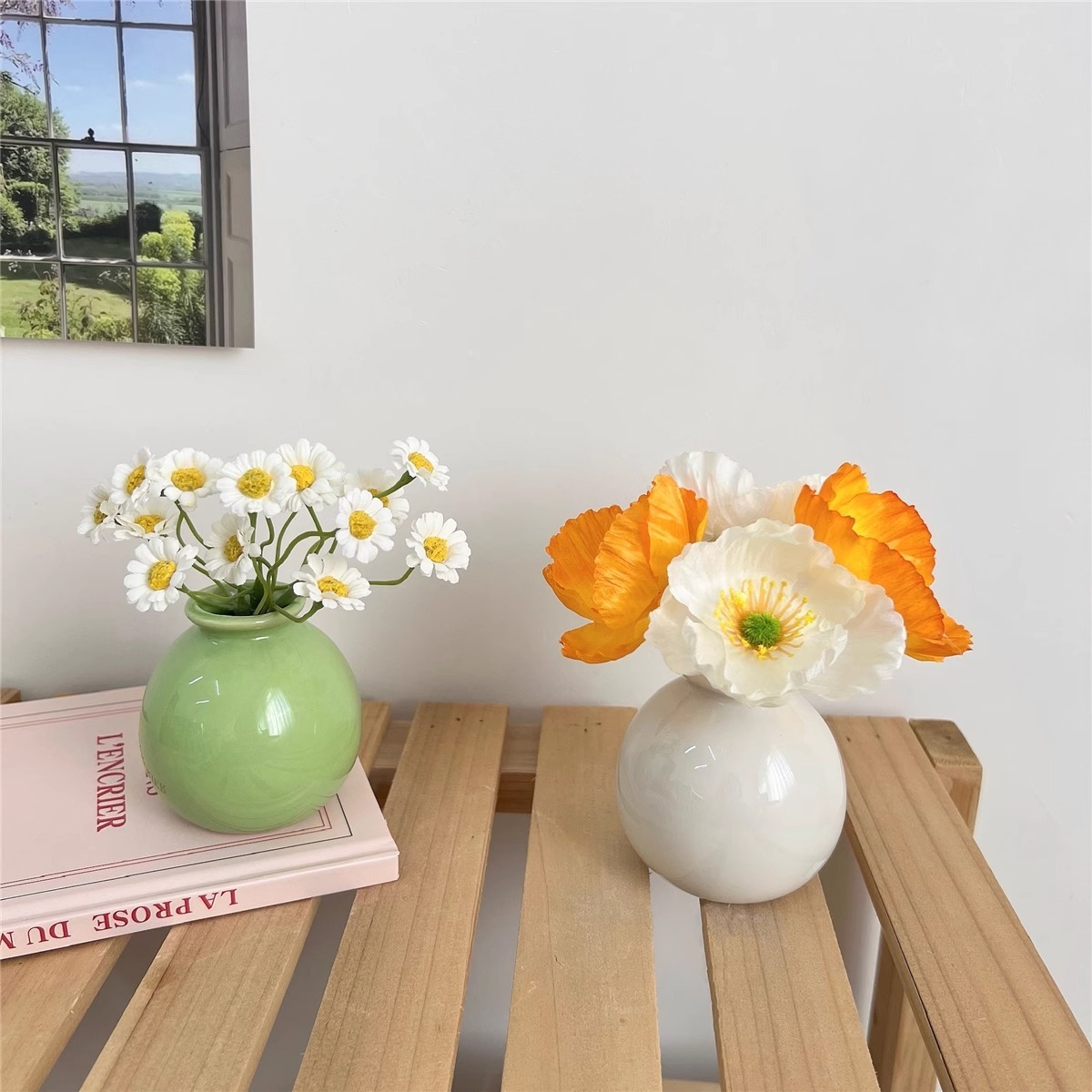 Ins 스타일 넓은 입 다채로운 세라믹 작은 꽃병 말린 꽃 시뮬레이션 꽃 세트 휴일 장식 데스크탑 미니 작은 장식품