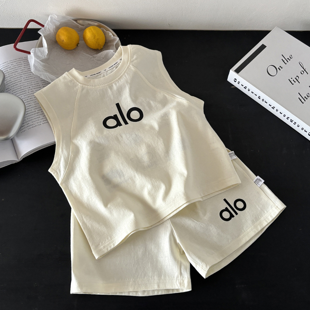 여름 민소매 한국 스타일 조끼 세트 순수 코튼 야외 소년과 소녀 조끼 + 반바지 투피스 세트