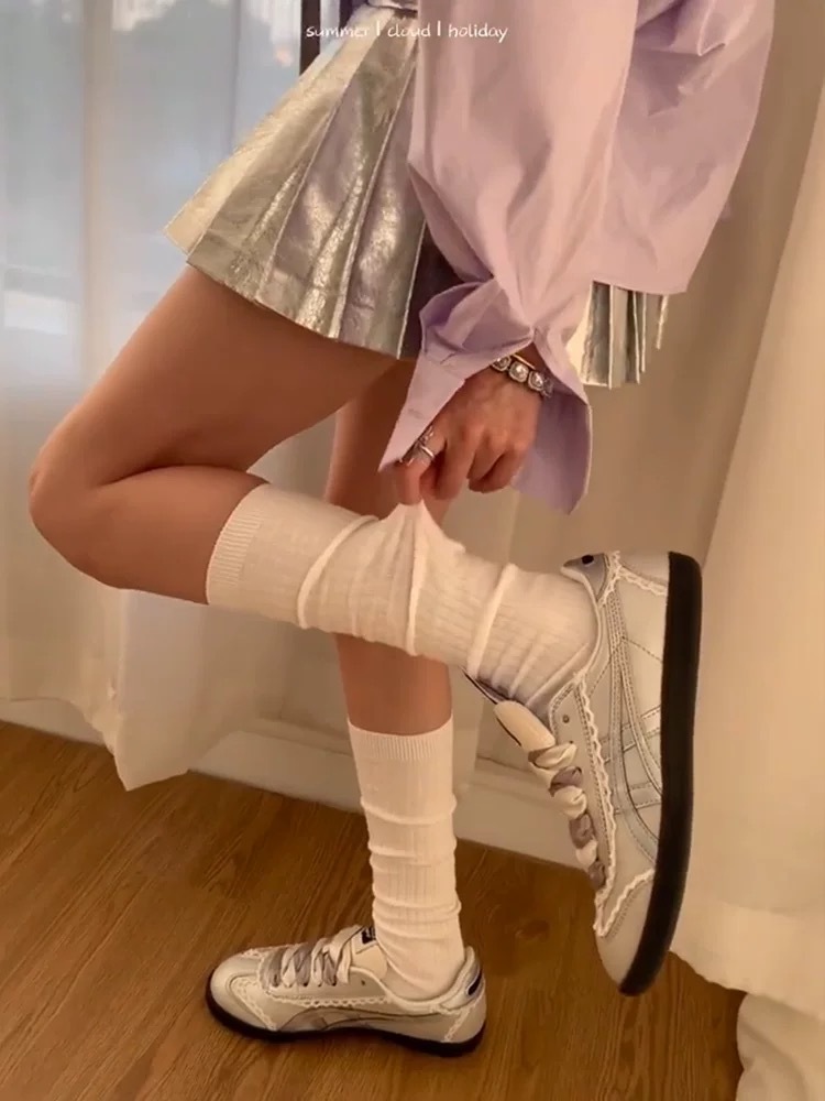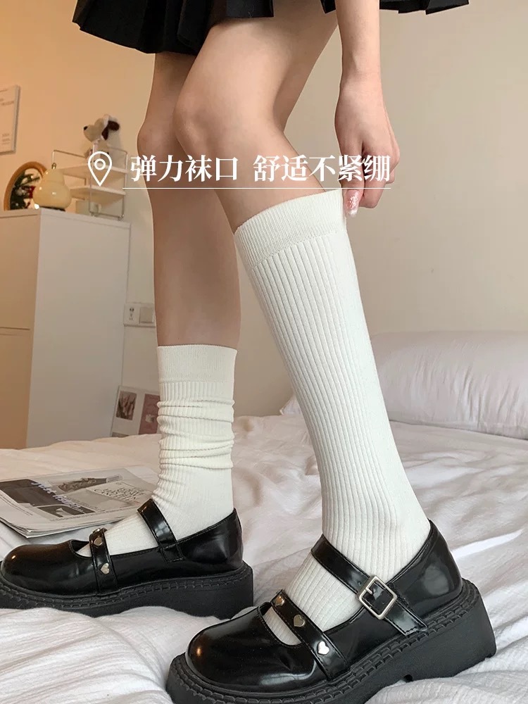 흰색 양말 여성용 스타킹 순면 봄 여름 양말 스타킹 압력 슬리밍 봄 가을 jk 종아리 양말스토어 가기