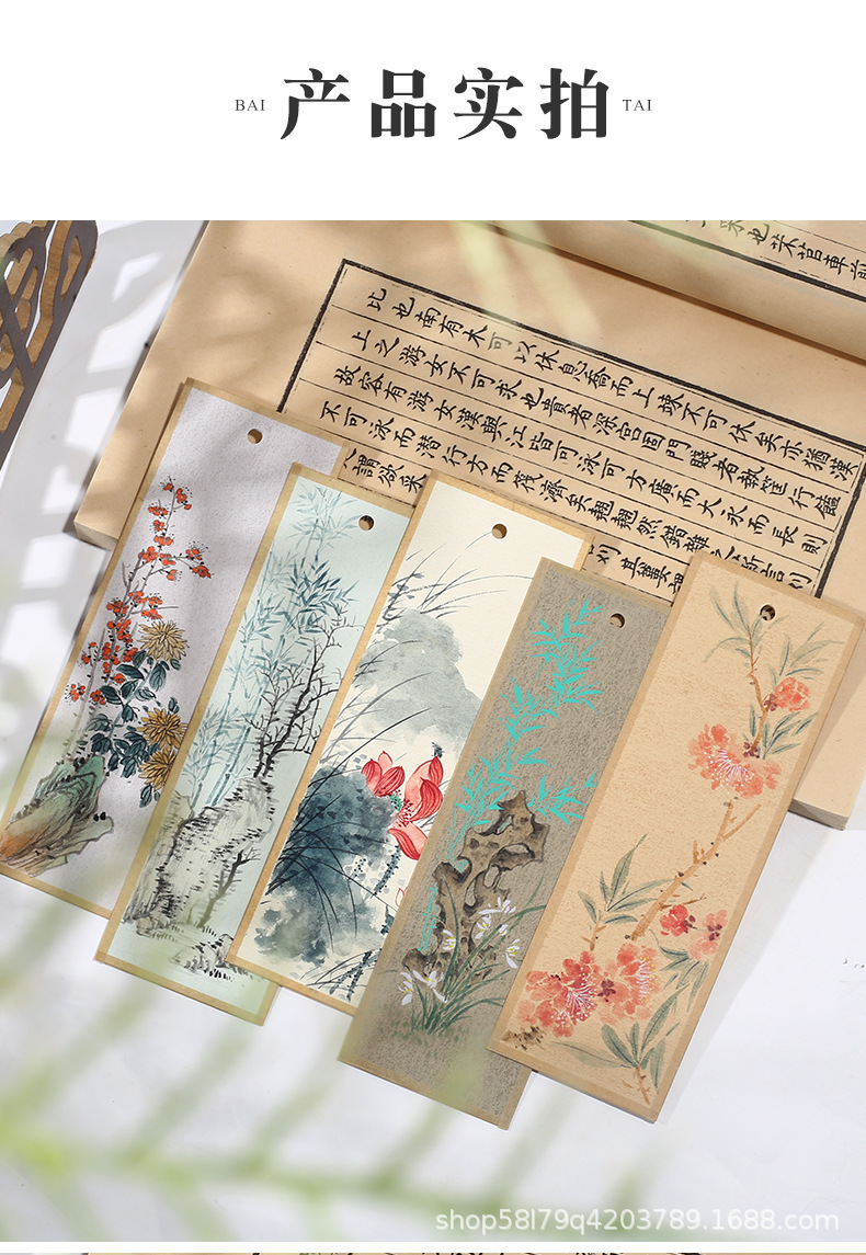 [수입산자리책갈피] 고전적인 중국풍 책갈피, 빈 산자리, 서예, 중국화, 익은 라미네이트 종이, 본 없는 종이스토어 가기