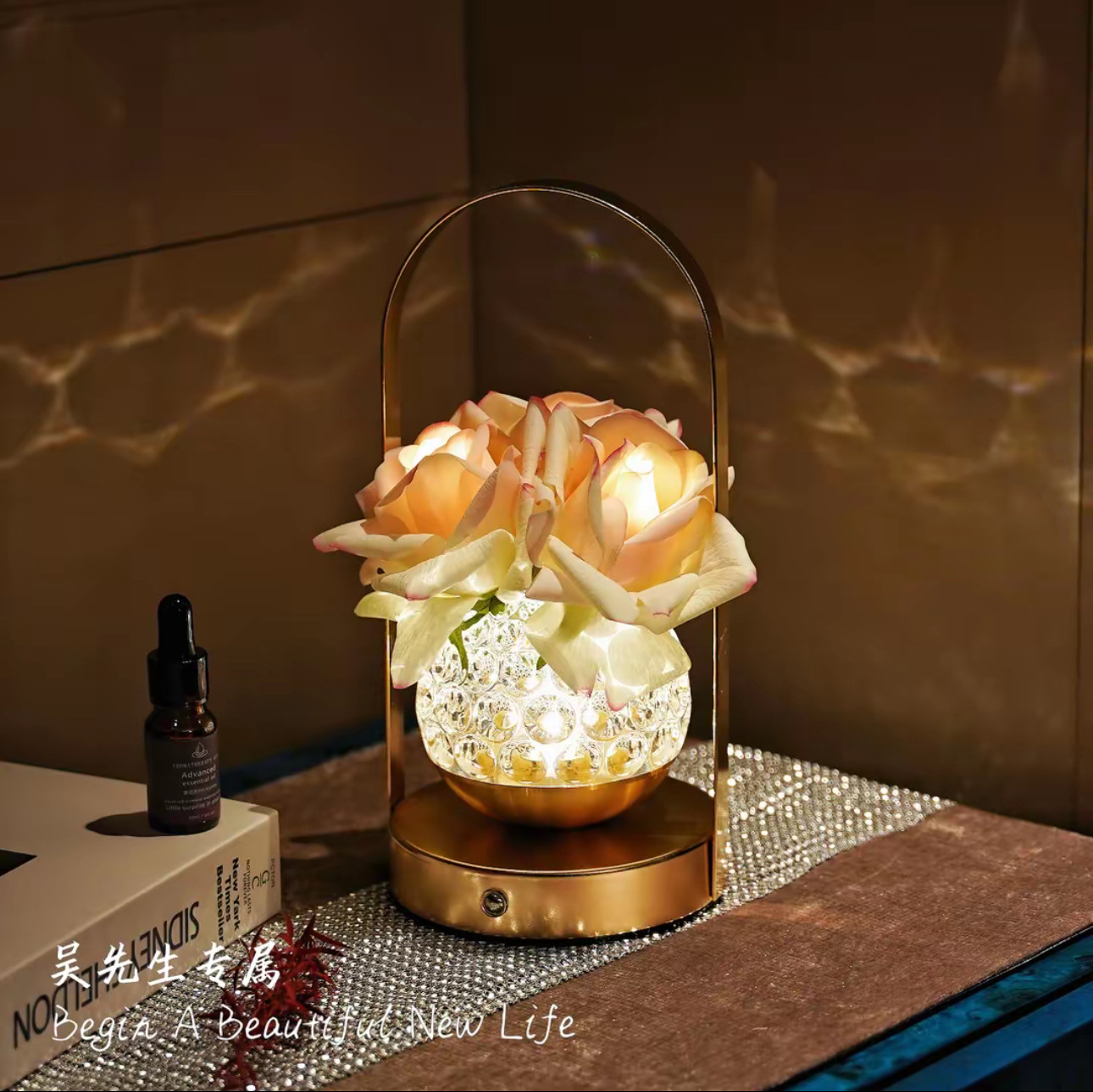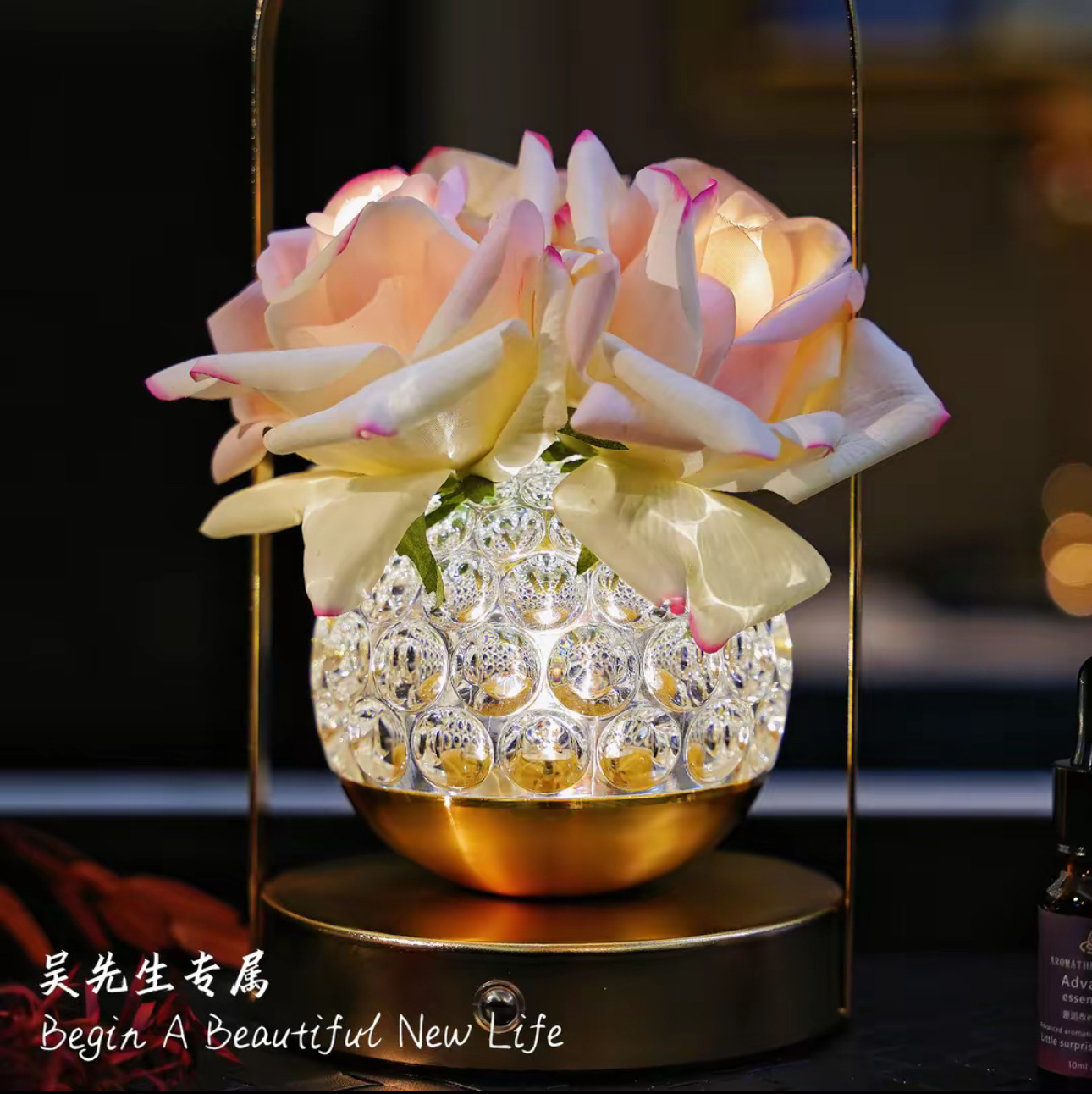 레트로 휴대용 분위기 크리스탈 램프 보습 장미 밤 빛 하이 엔드 침대 옆 분위기 램프 크리 에이 티브 선물스토어 가기