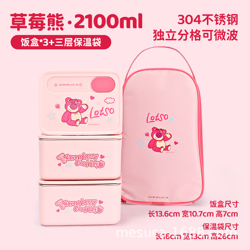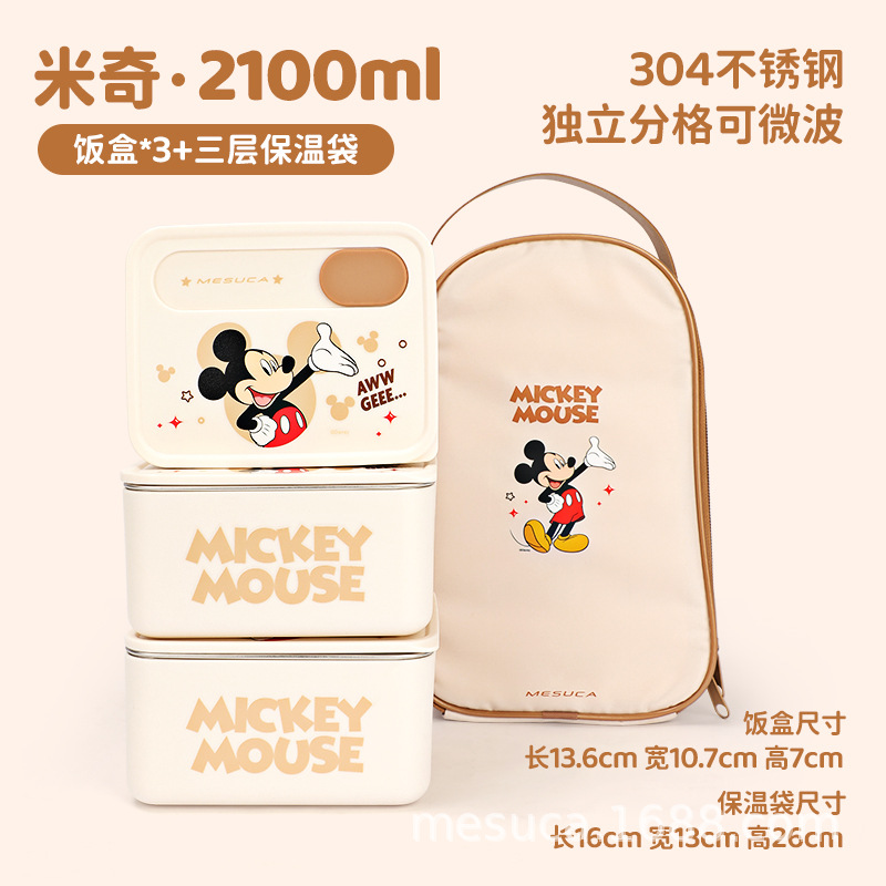 • DM25139-A2 3단 사쿠라 미키 2100ml + 두꺼운 보온백 [304 스테인리스/전자레인지 가열 가능]