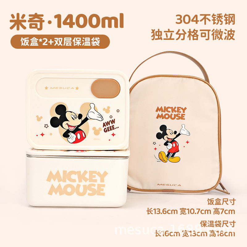 • DM25139-A1 더블 레이어 미키 1400ml + 두꺼운 보온백 [304 스테인레스 스틸/전자레인지 가열 가능]