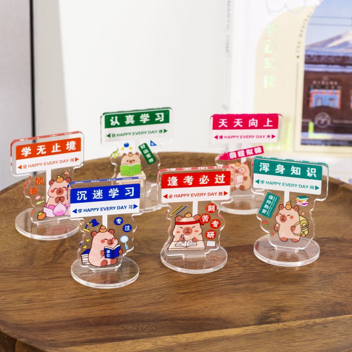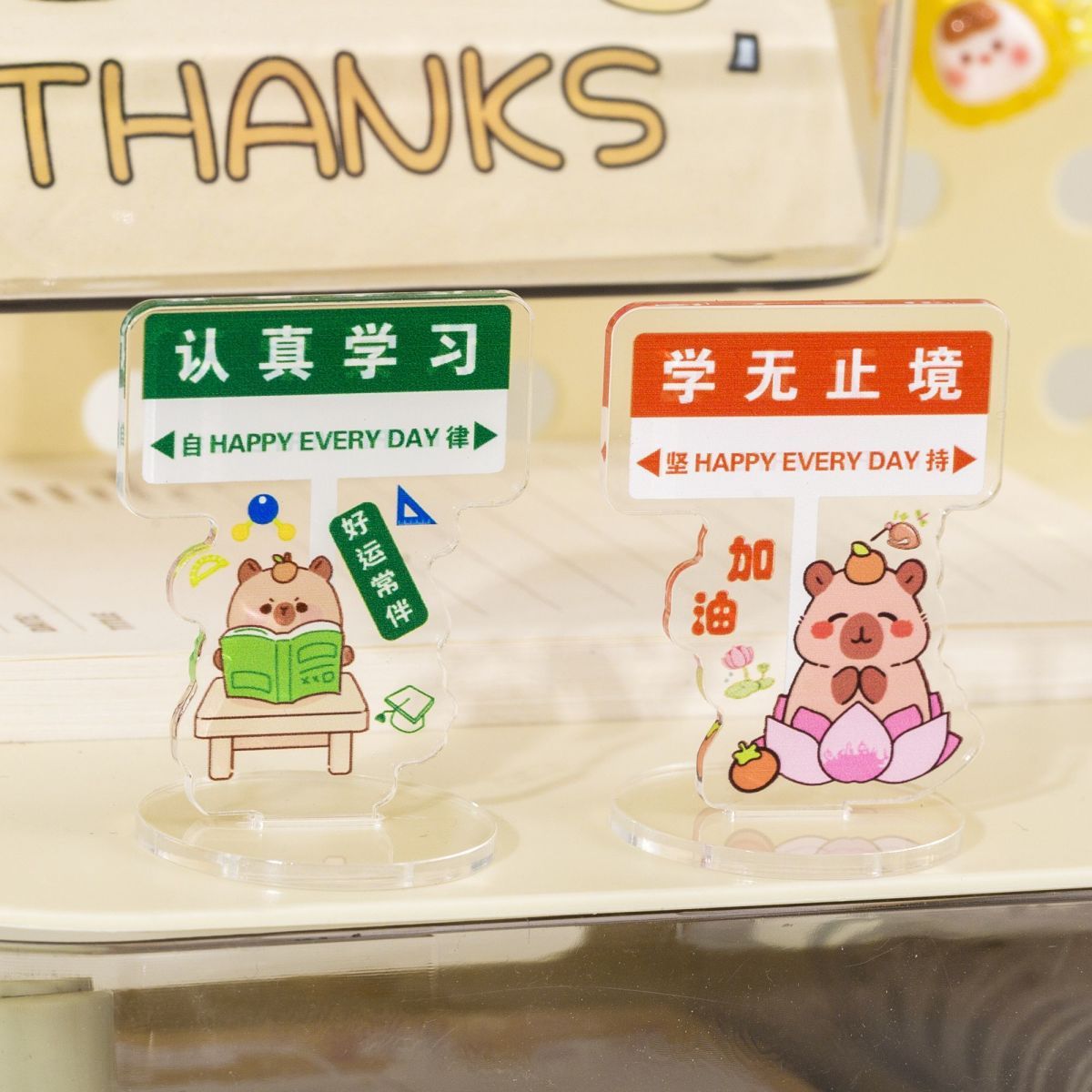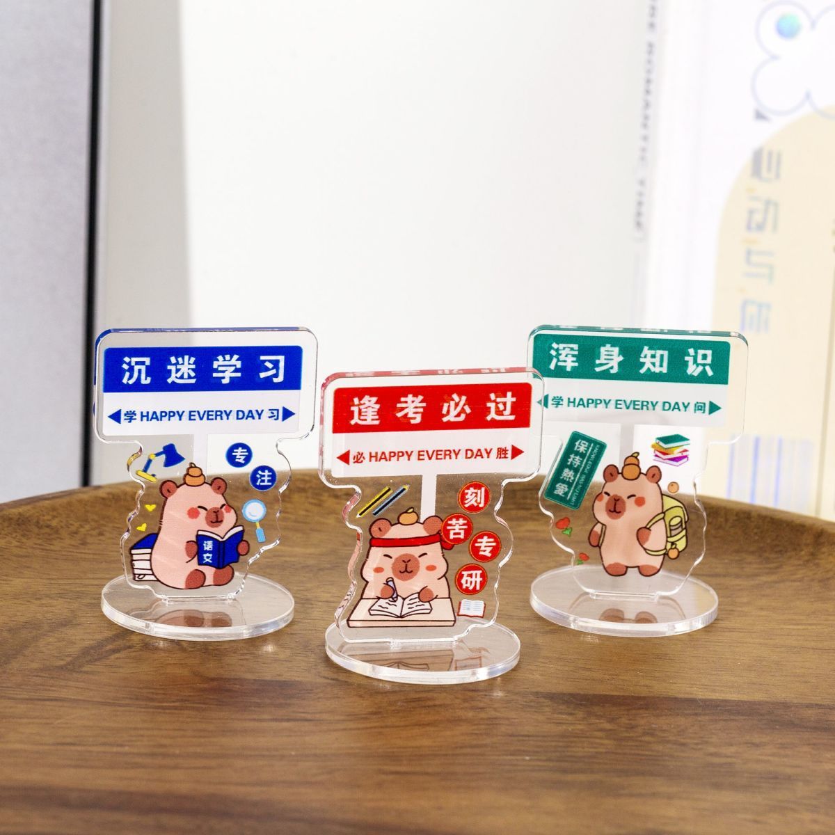 귀여운 카피바라 학생 데스크탑 장식품 선물 졸업 카피바라 영감 텍스트 아크릴 작은 스탠드 미니스토어 가기