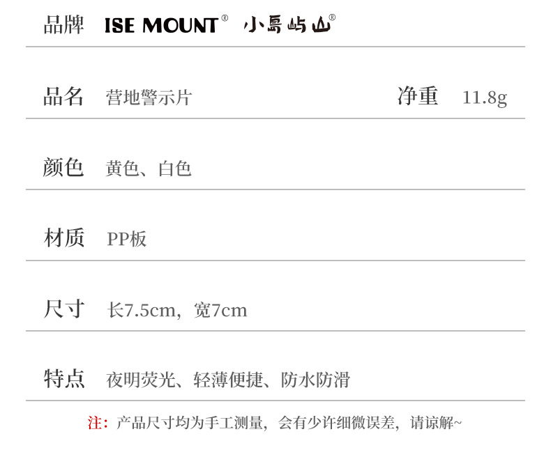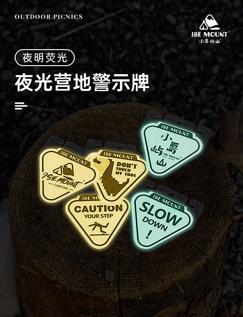 ISE MOUNT 야외 빛나는 캠프 경고 표시 휴대용 캠핑 PP 보드 반사 형광 표시 삼각형 조명스토어 가기