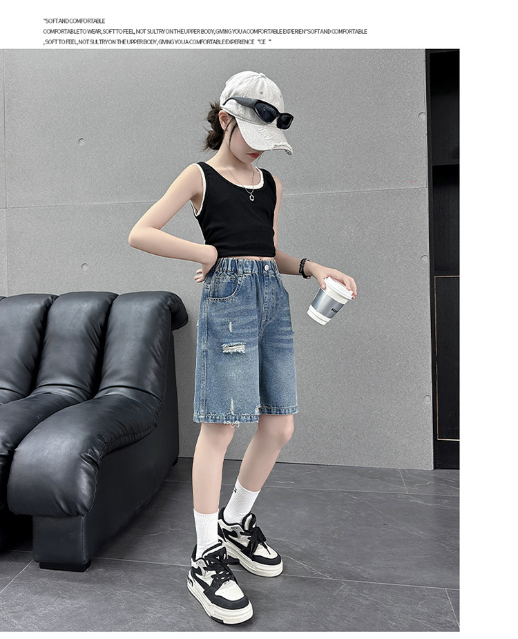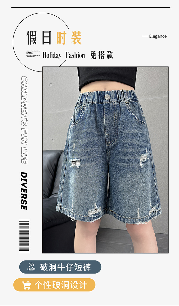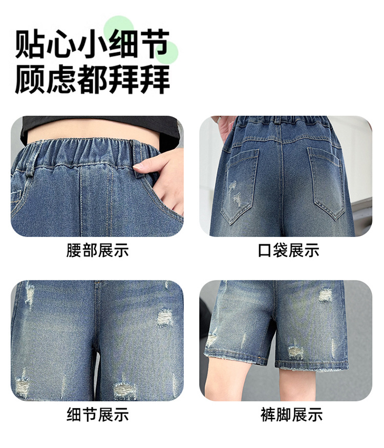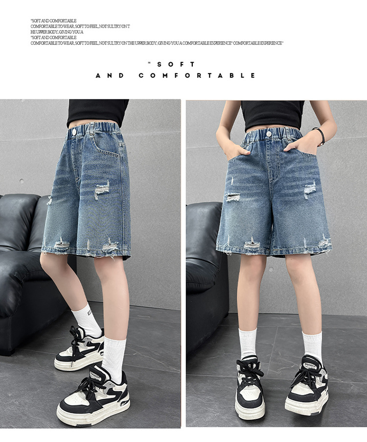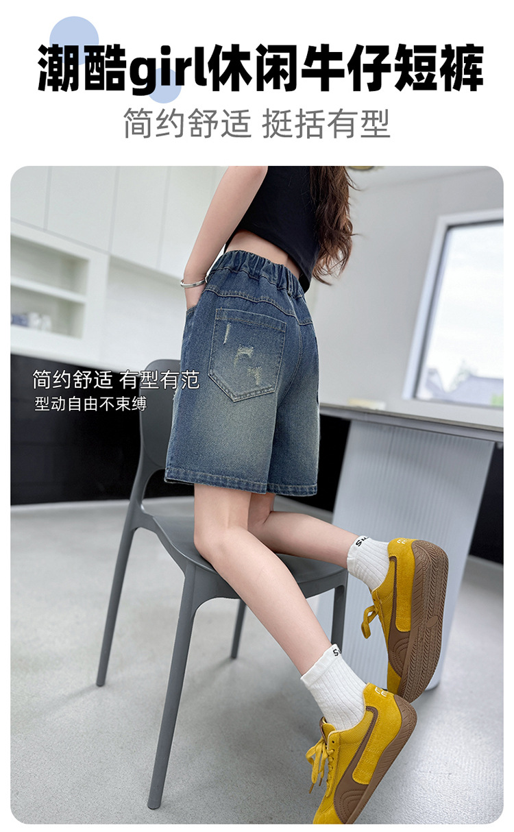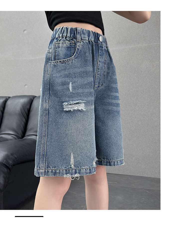 여아 데님 반바지 여름용 얇은 스타일 중대형 아동용 2026년 신상 레트로 아동복 세련된 데미지 팬츠