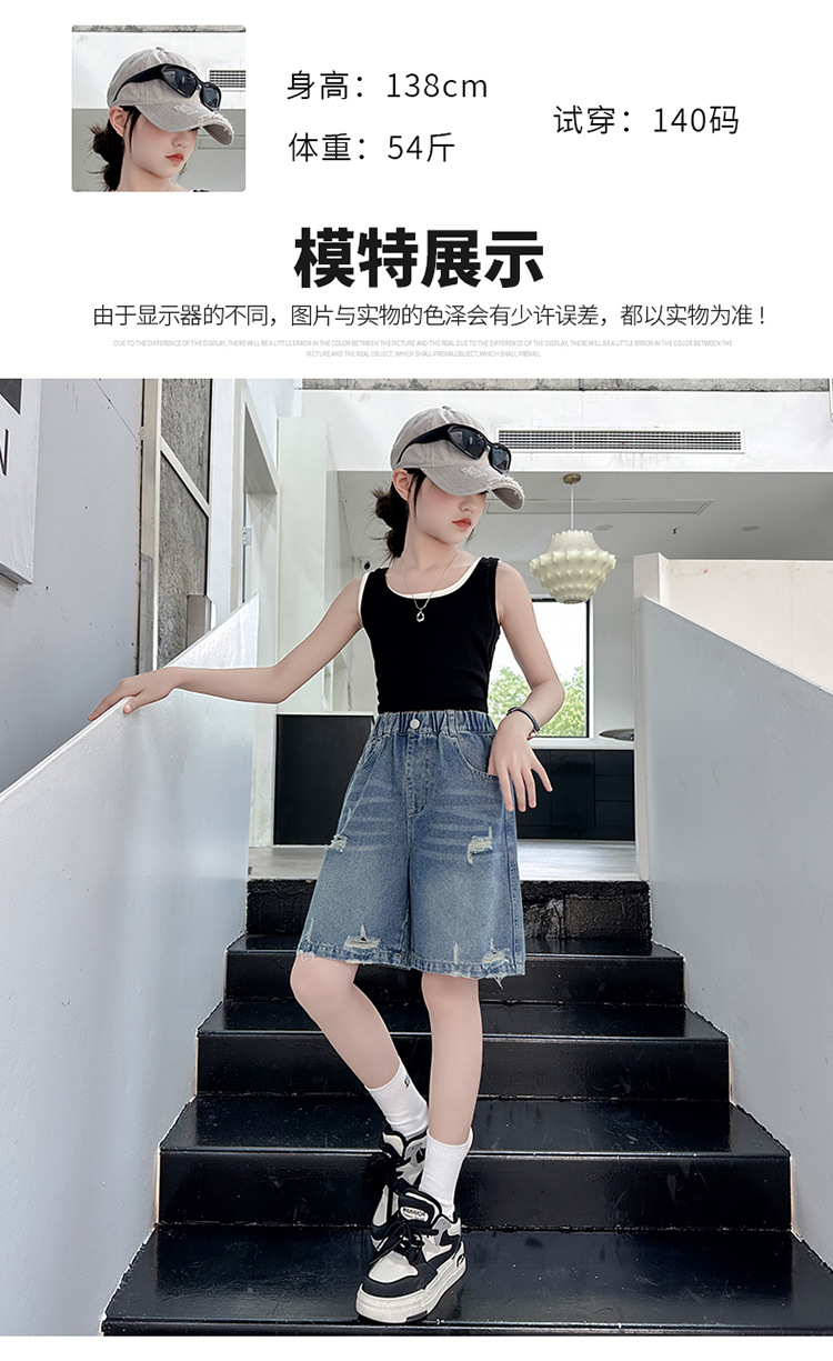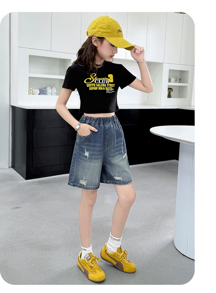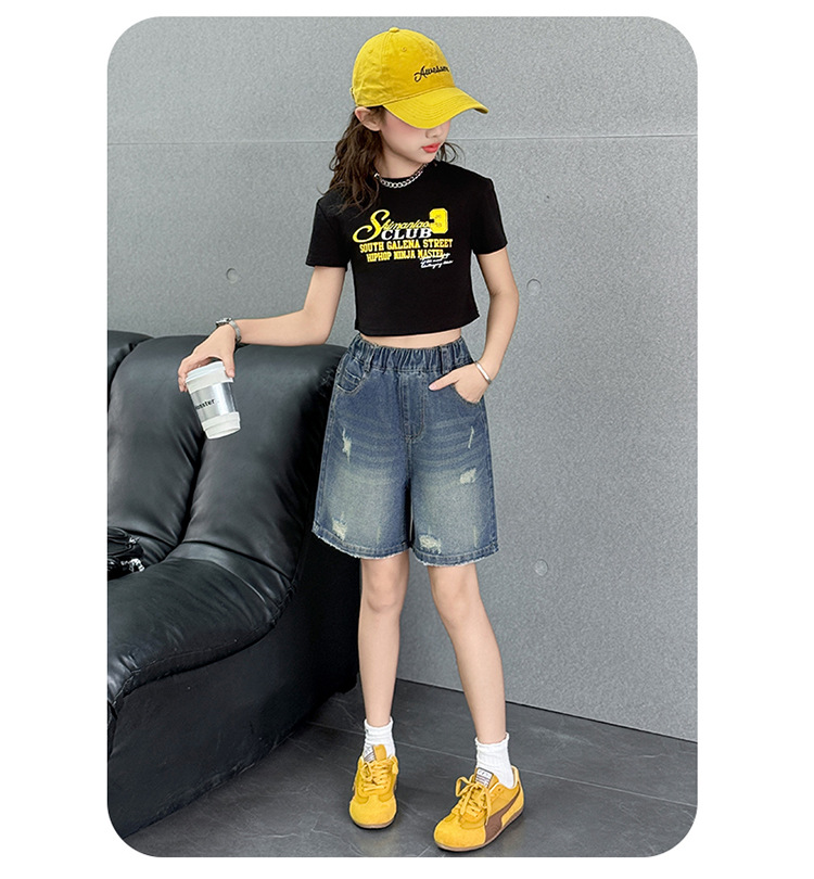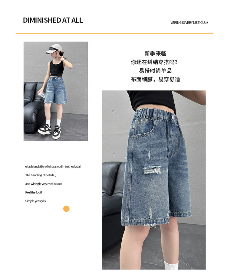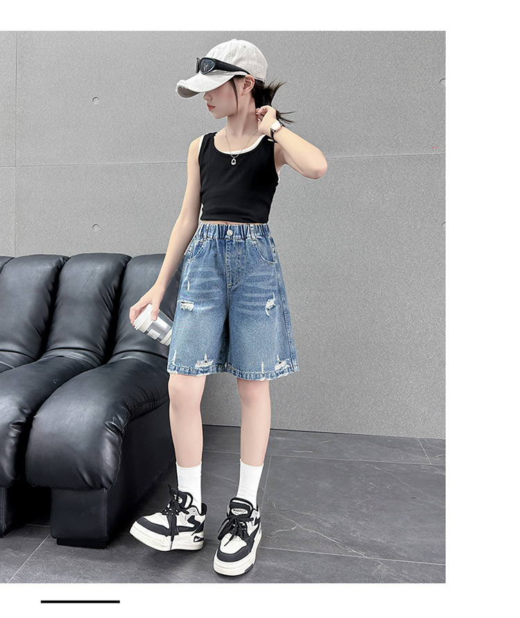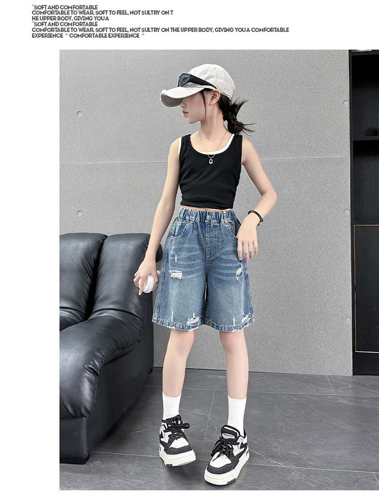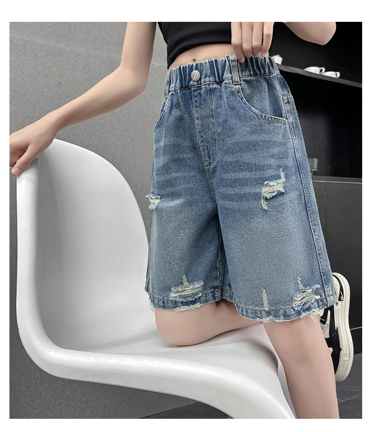 여아 데님 반바지 여름용 얇은 스타일 중대형 아동용 2026년 신상 레트로 아동복 세련된 데미지 팬츠
