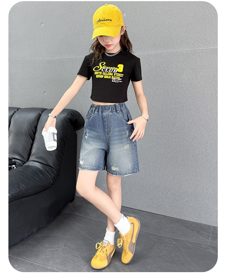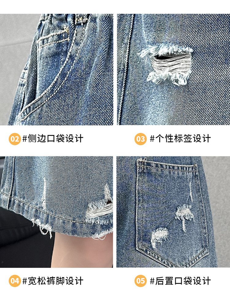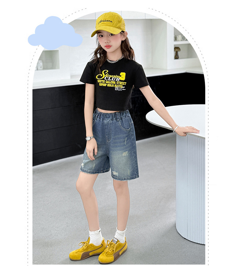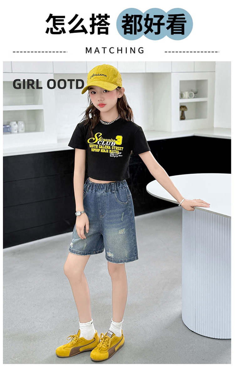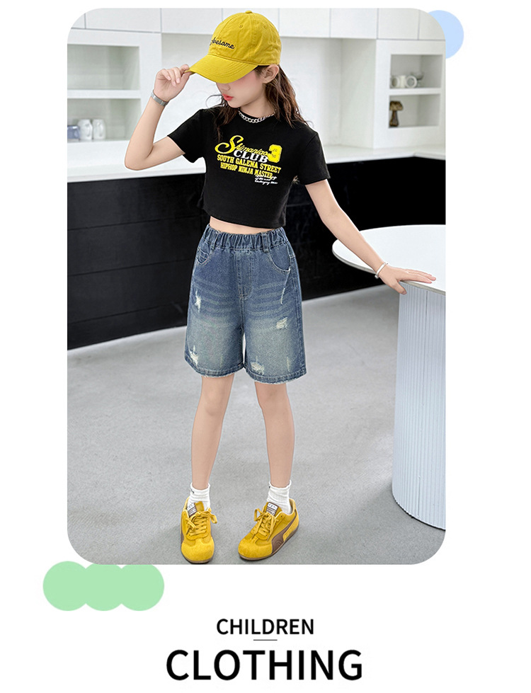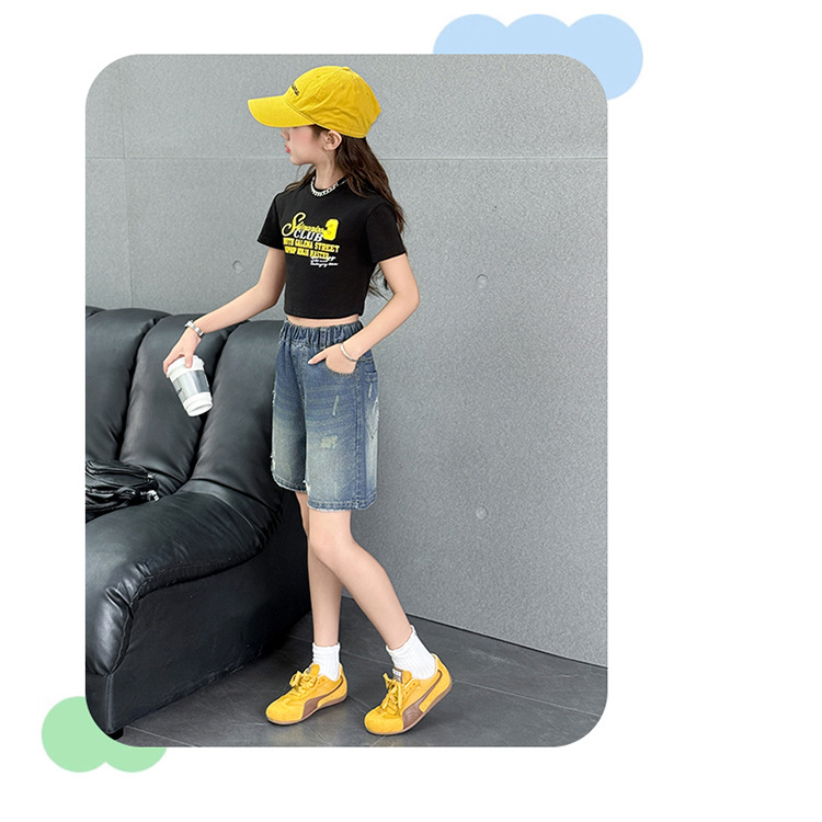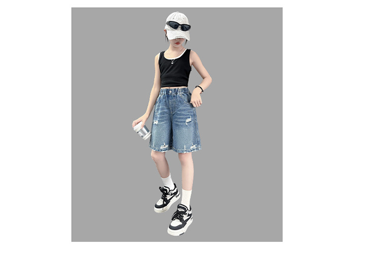 여아 데님 반바지 여름용 얇은 스타일 중대형 아동용 2026년 신상 레트로 아동복 세련된 데미지 팬츠