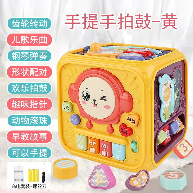 • 배터리 드라이버가 포함된 6면 핸드 드럼 노란색 배터리 버전