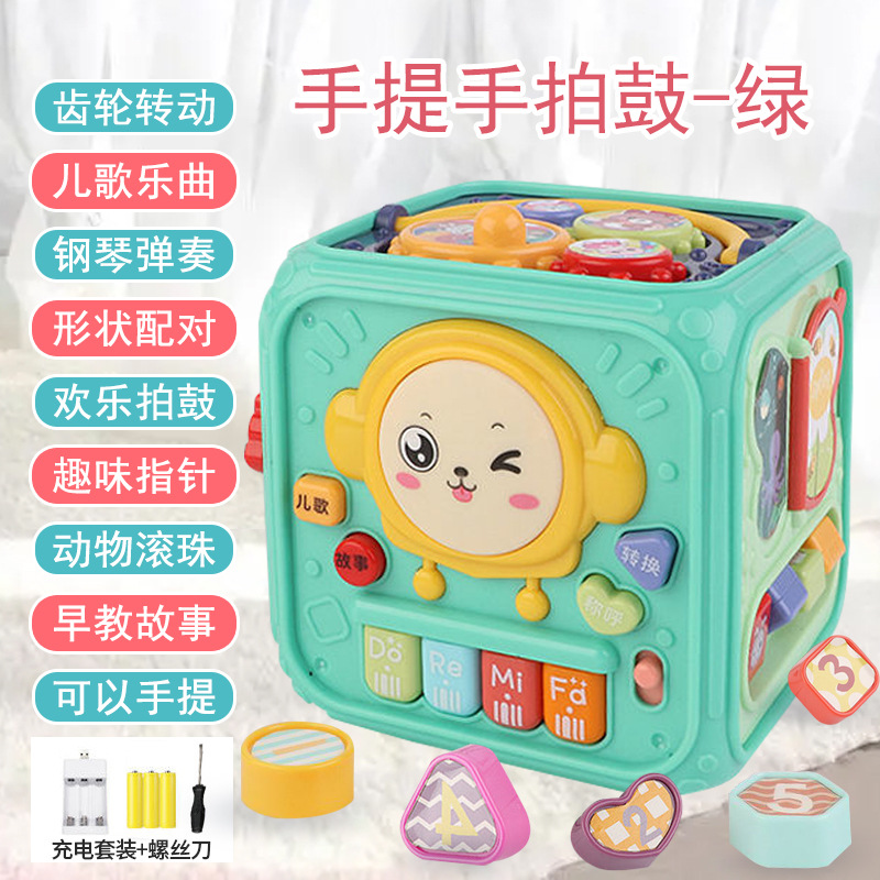 • 배터리 드라이버가 포함된 6면 핸드 드럼-녹색-배터리 버전