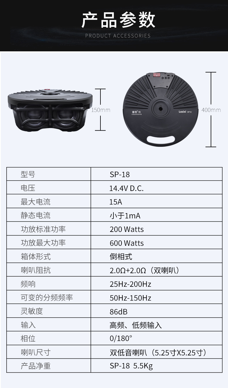 레이 컬러 자동차 600W 스페어 타이어 서브우퍼 액티브 앰프 포함 공간을 차지하지 않는 초박형 순수 베이스 수정 서브우퍼