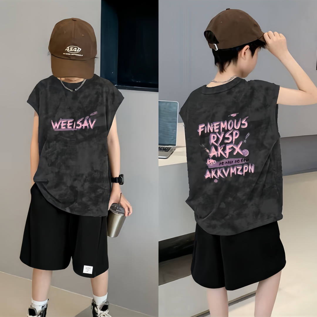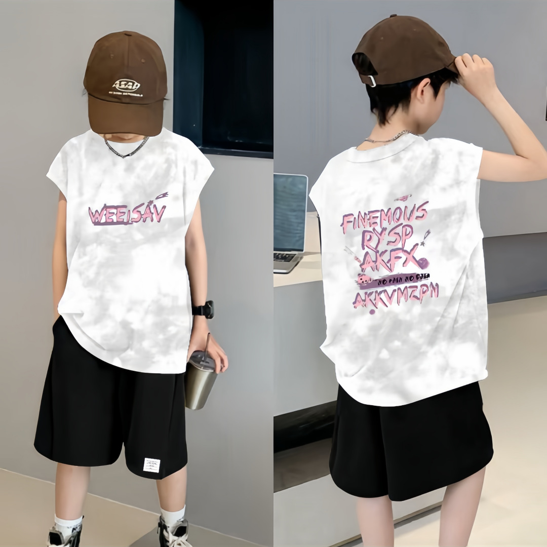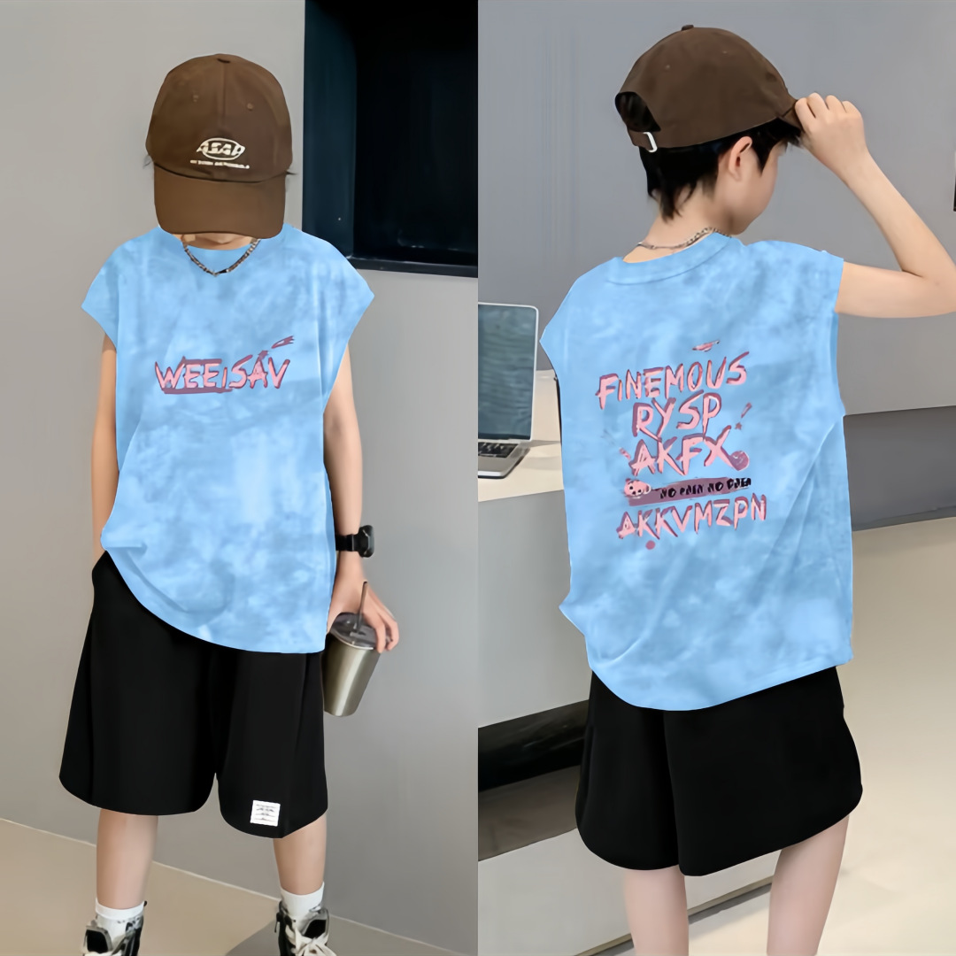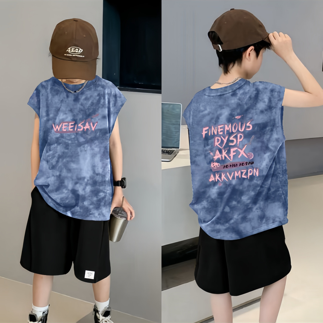 소년 100% 면 타이 염색 조끼 민소매 조끼 여름 새로운 스타일 중대형 어린이 캐주얼 다목적 기능 스타일 조끼