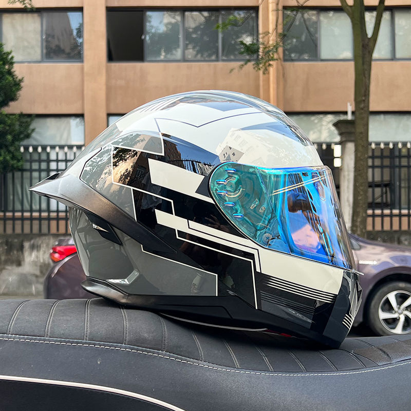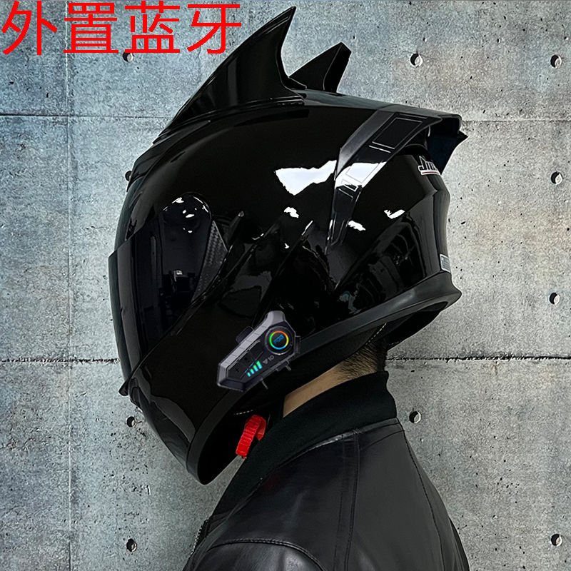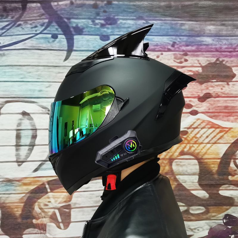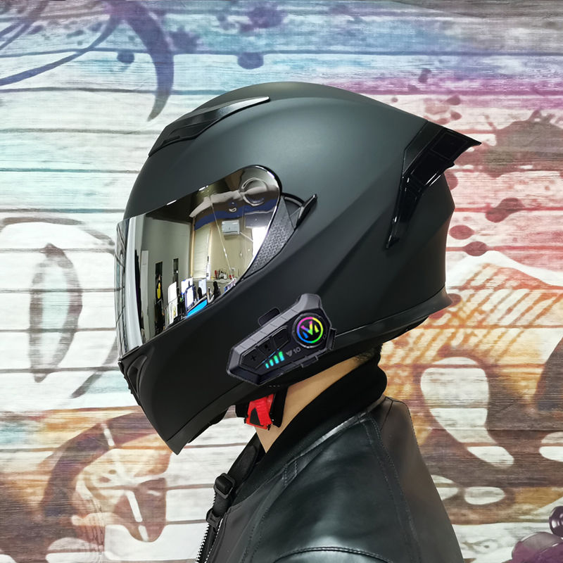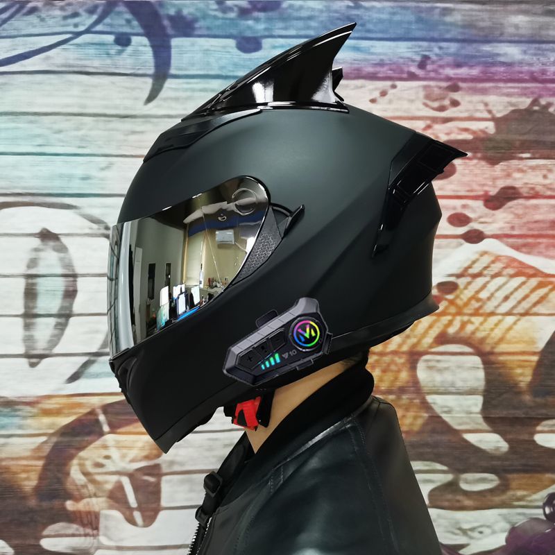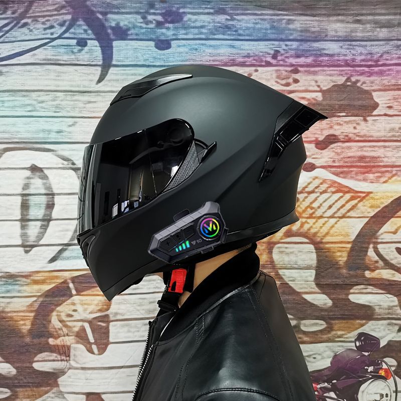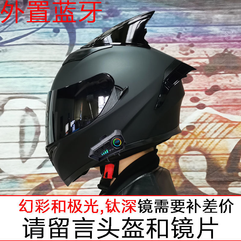 남성용 및 여성용 새로운 오토바이 헬멧, 이중 미러 오토바이 여름 안전 인증 블랙 워리어 블루투스 슬롯 방수 및 자외선 차단스토어 가기