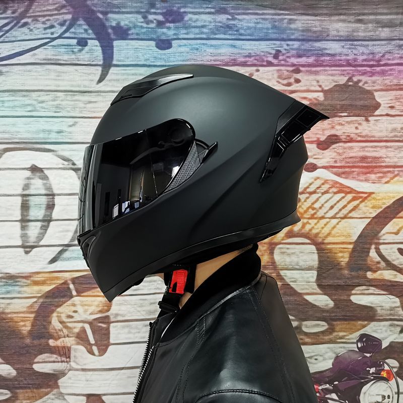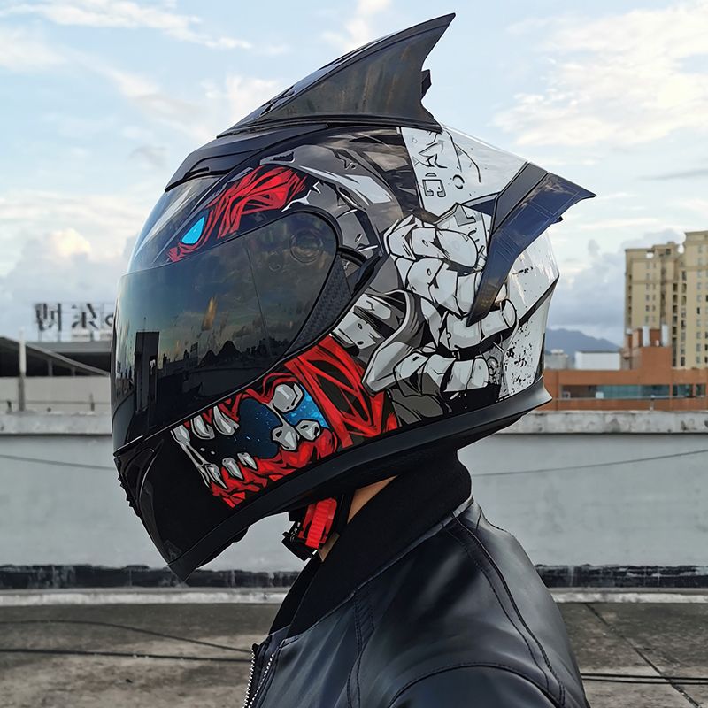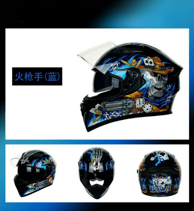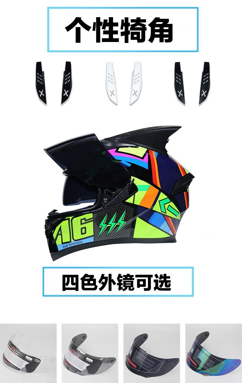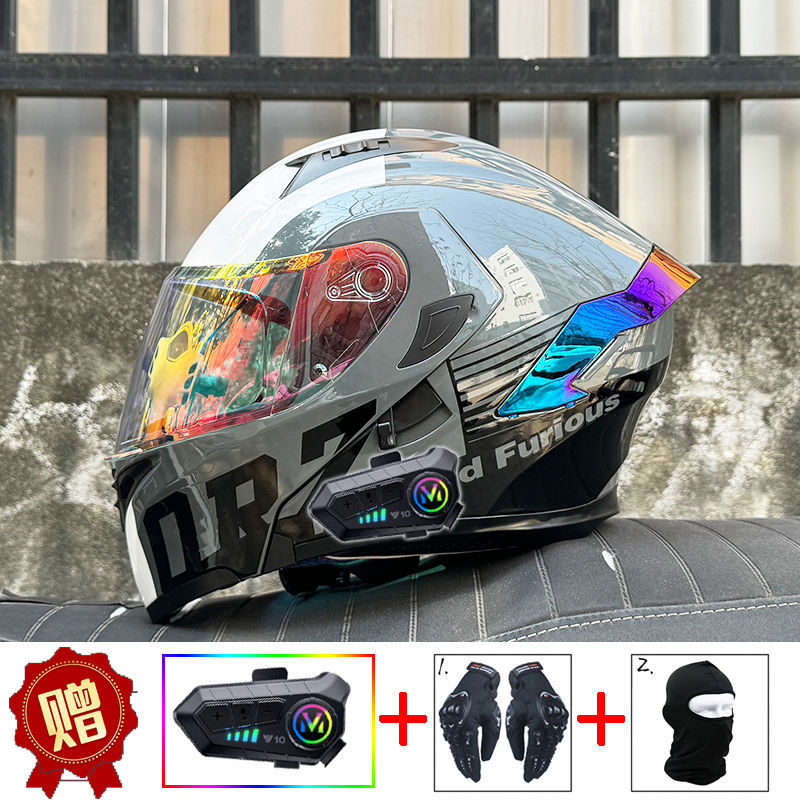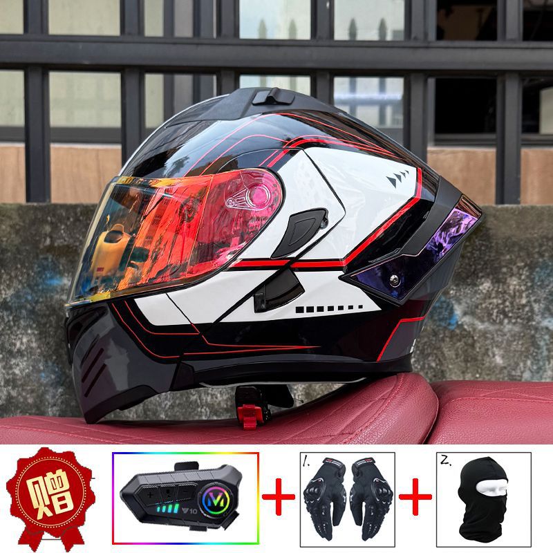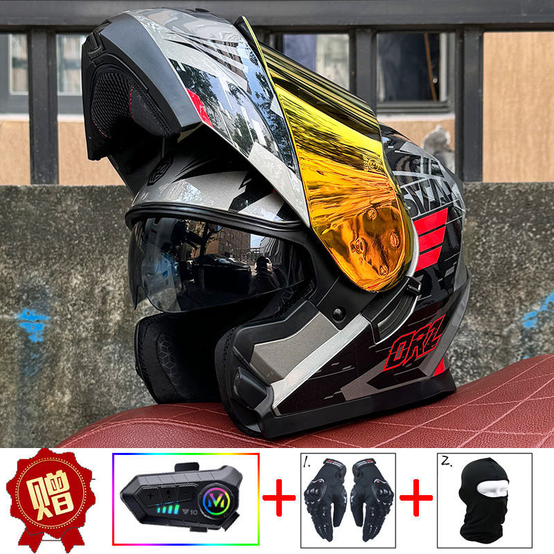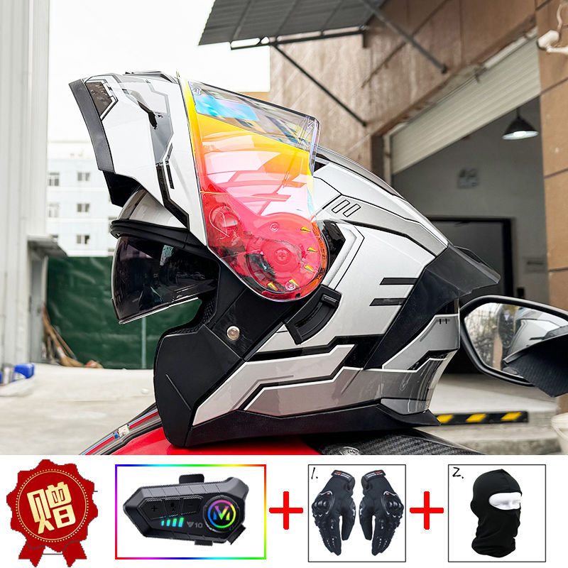 남성용 및 여성용 새로운 오토바이 헬멧, 이중 미러 오토바이 여름 안전 인증 블랙 워리어 블루투스 슬롯 방수 및 자외선 차단스토어 가기