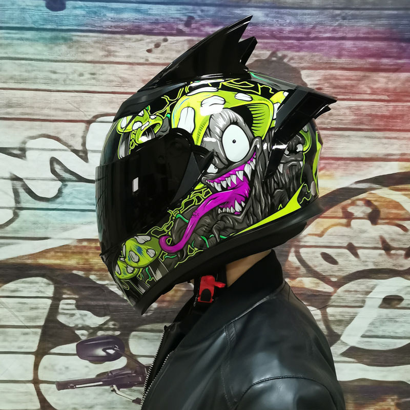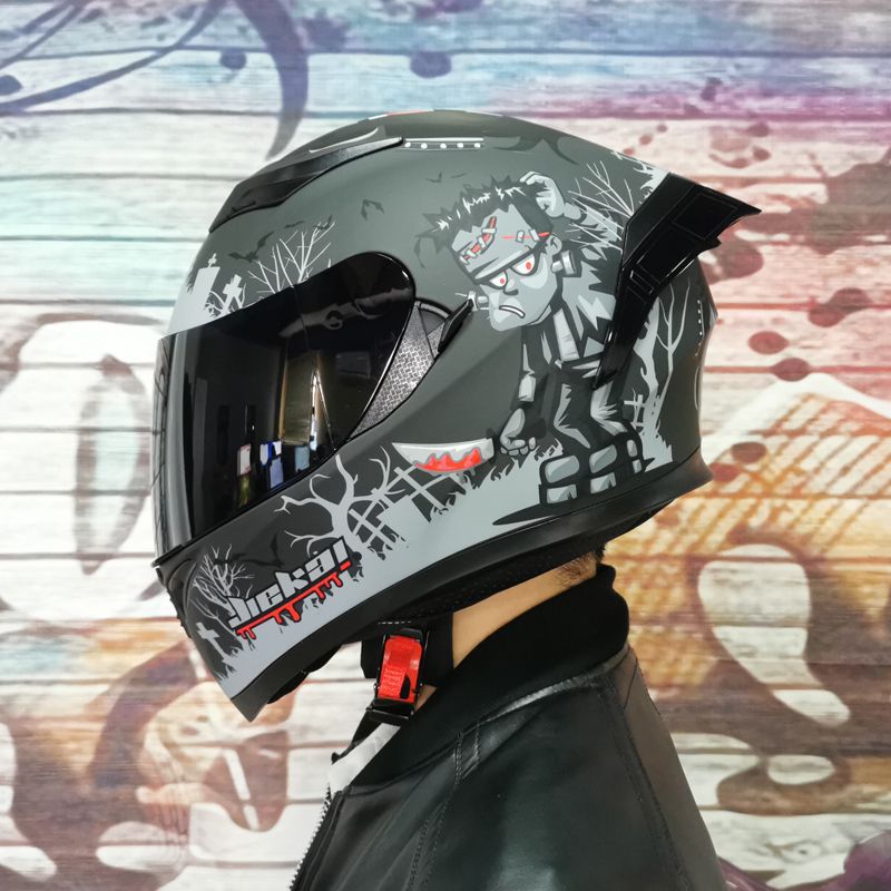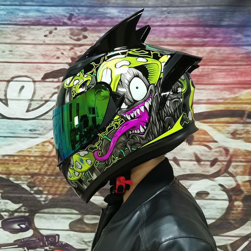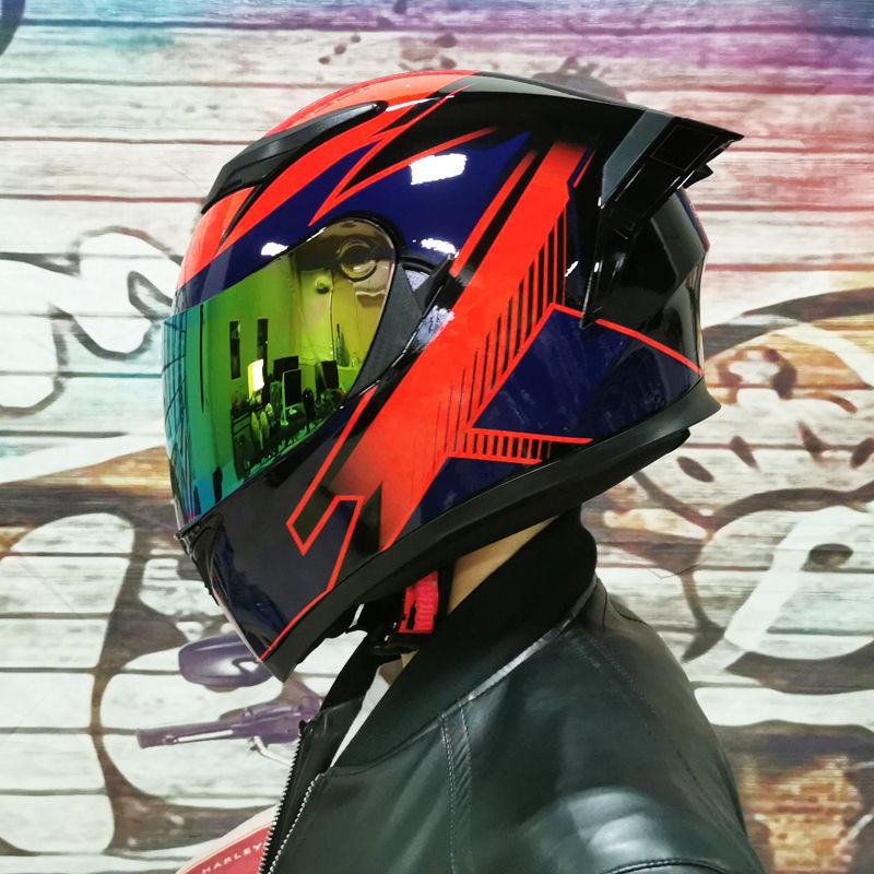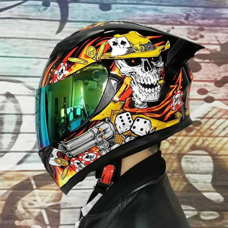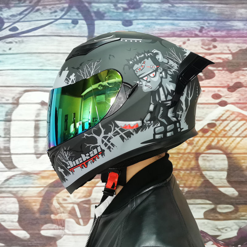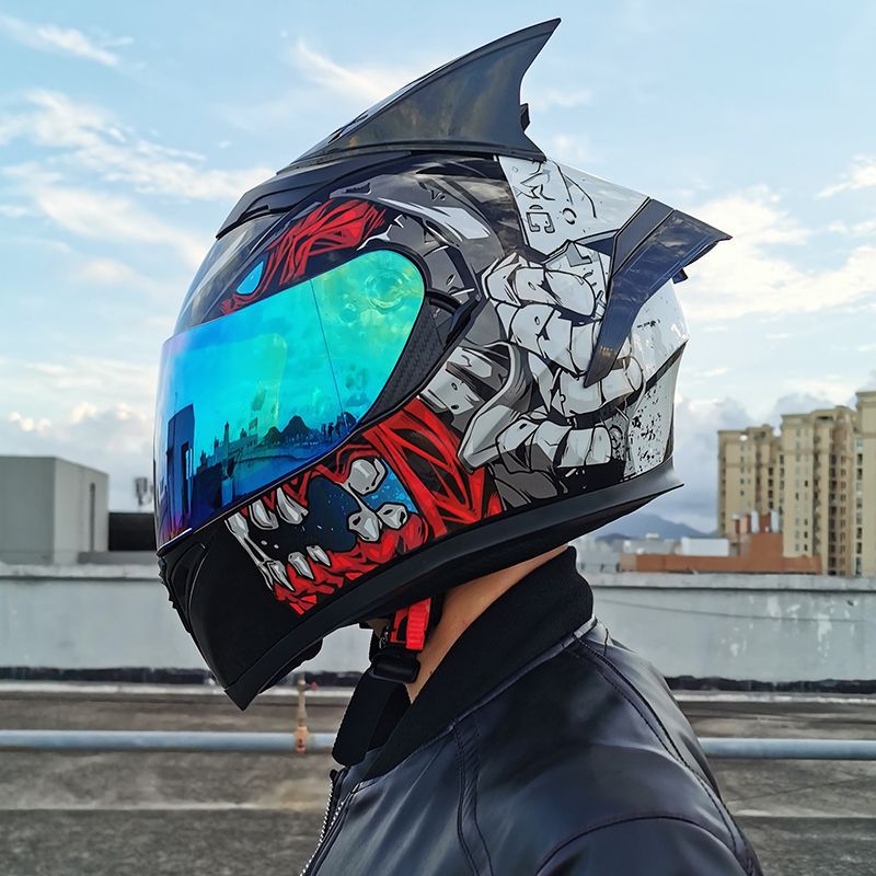 남성용 및 여성용 새로운 오토바이 헬멧, 이중 미러 오토바이 여름 안전 인증 블랙 워리어 블루투스 슬롯 방수 및 자외선 차단스토어 가기