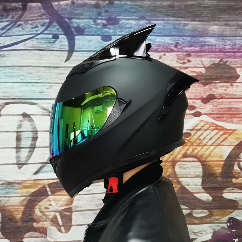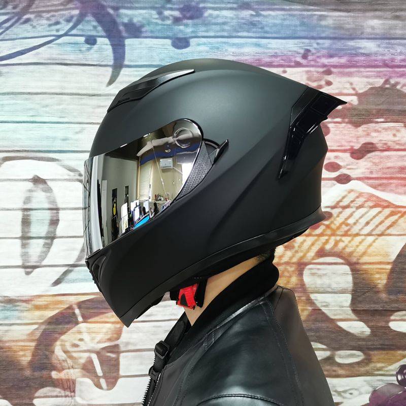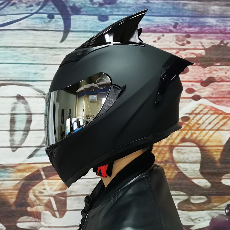 남성용 및 여성용 새로운 오토바이 헬멧, 이중 미러 오토바이 여름 안전 인증 블랙 워리어 블루투스 슬롯 방수 및 자외선 차단
