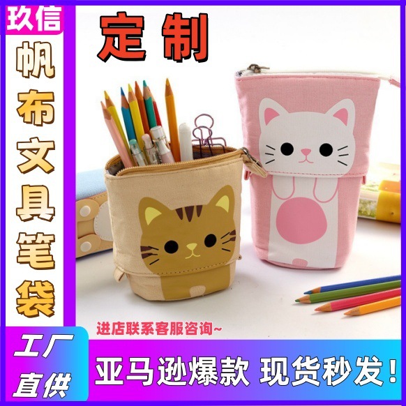 Anko 한국 귀여운 간단한 다기능 펜 홀더 연필 케이스 변경 가능한 드롭 다운 캔버스 연필 케이스스토어 가기