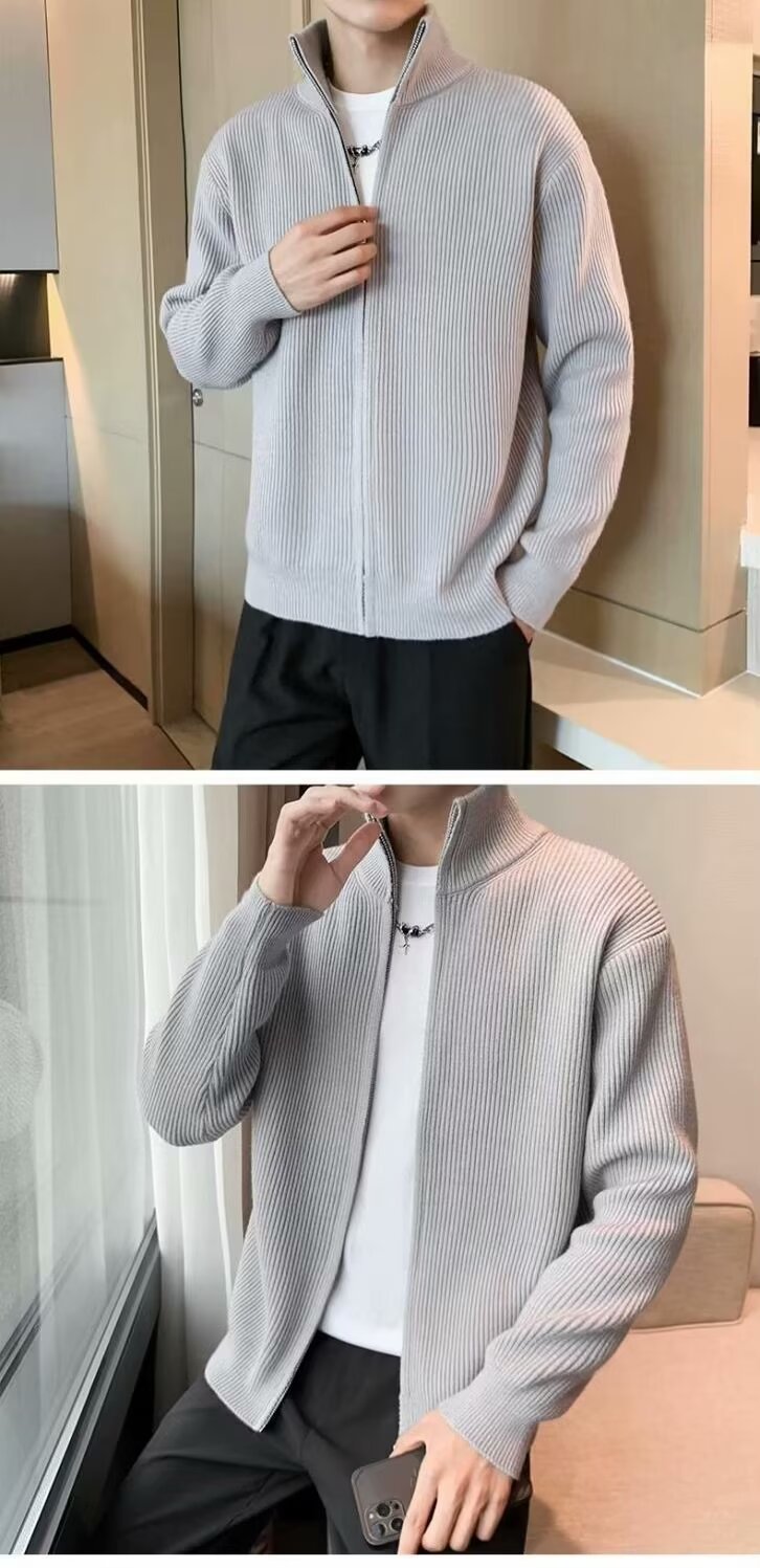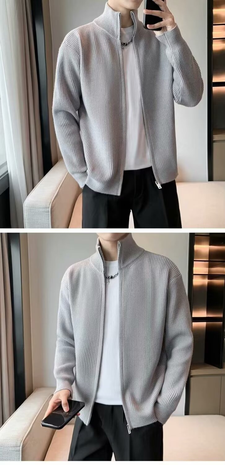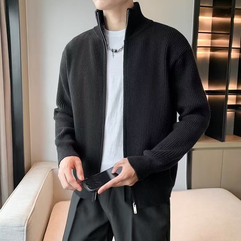 하프 터틀넥 지퍼 스웨터 솔리드 컬러 트렌디 브랜드 남성 하이 엔드 틈새 스웨터 아우터 멋진 긴팔 카디건 재킷