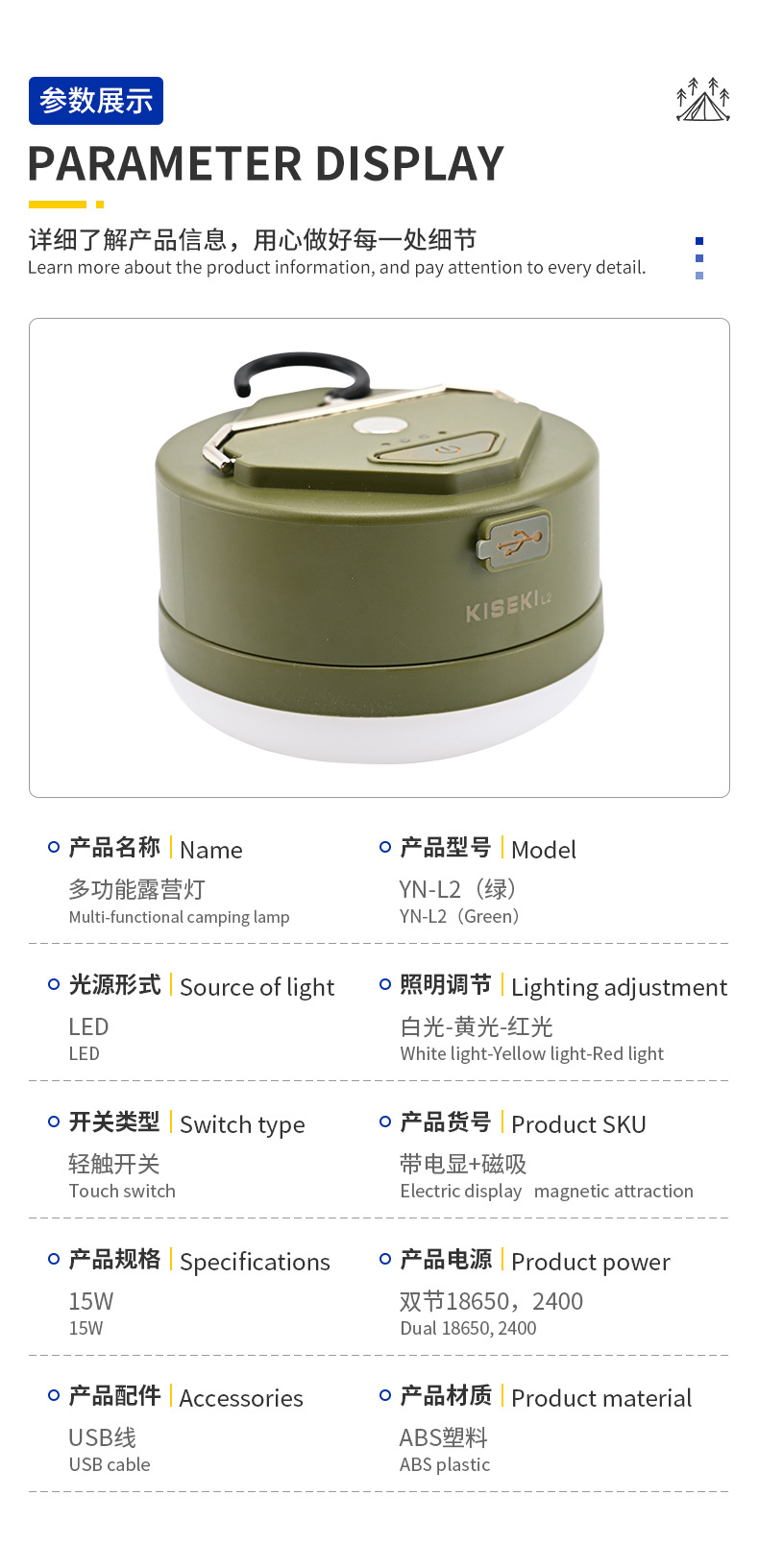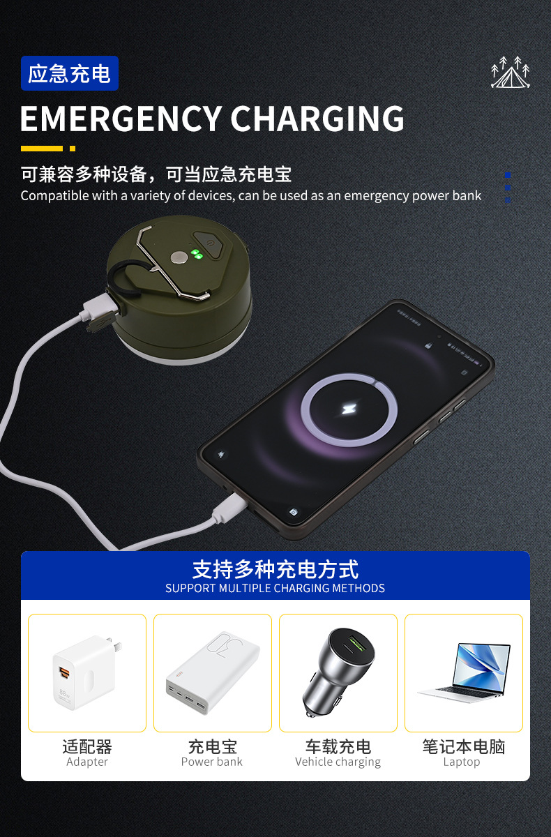 다기능 캠핑 조명 충전식 TYPE-C 자기 교수형 야외 조명 긴 배터리 수명 강한 빛 텐트 캠핑 조명