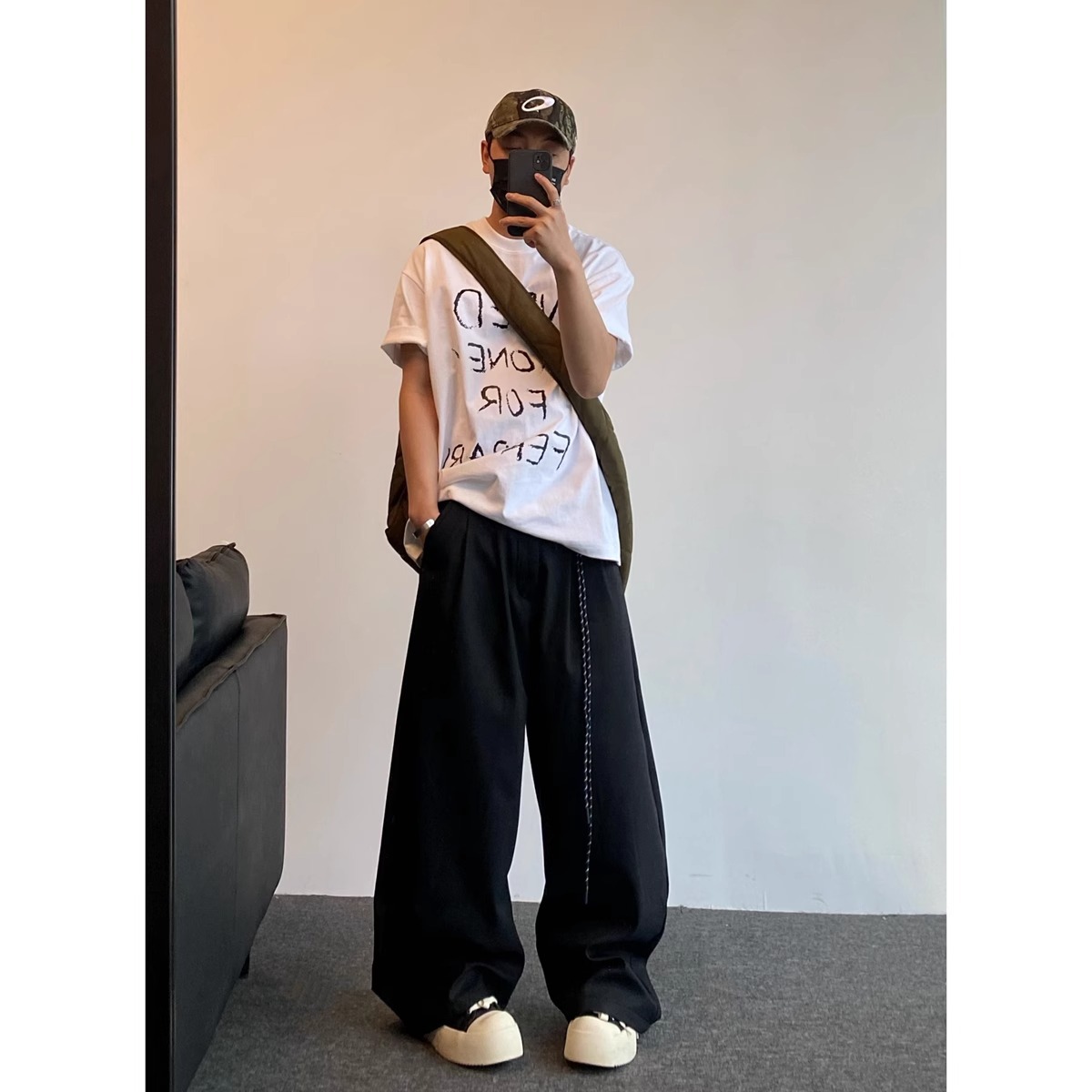 아메리칸 레트로 통근 드레이프 칼날 캐주얼 바지 남성 여름 신작 스트레이트 바지 루즈 트렌디 브랜드 와이드 팬츠