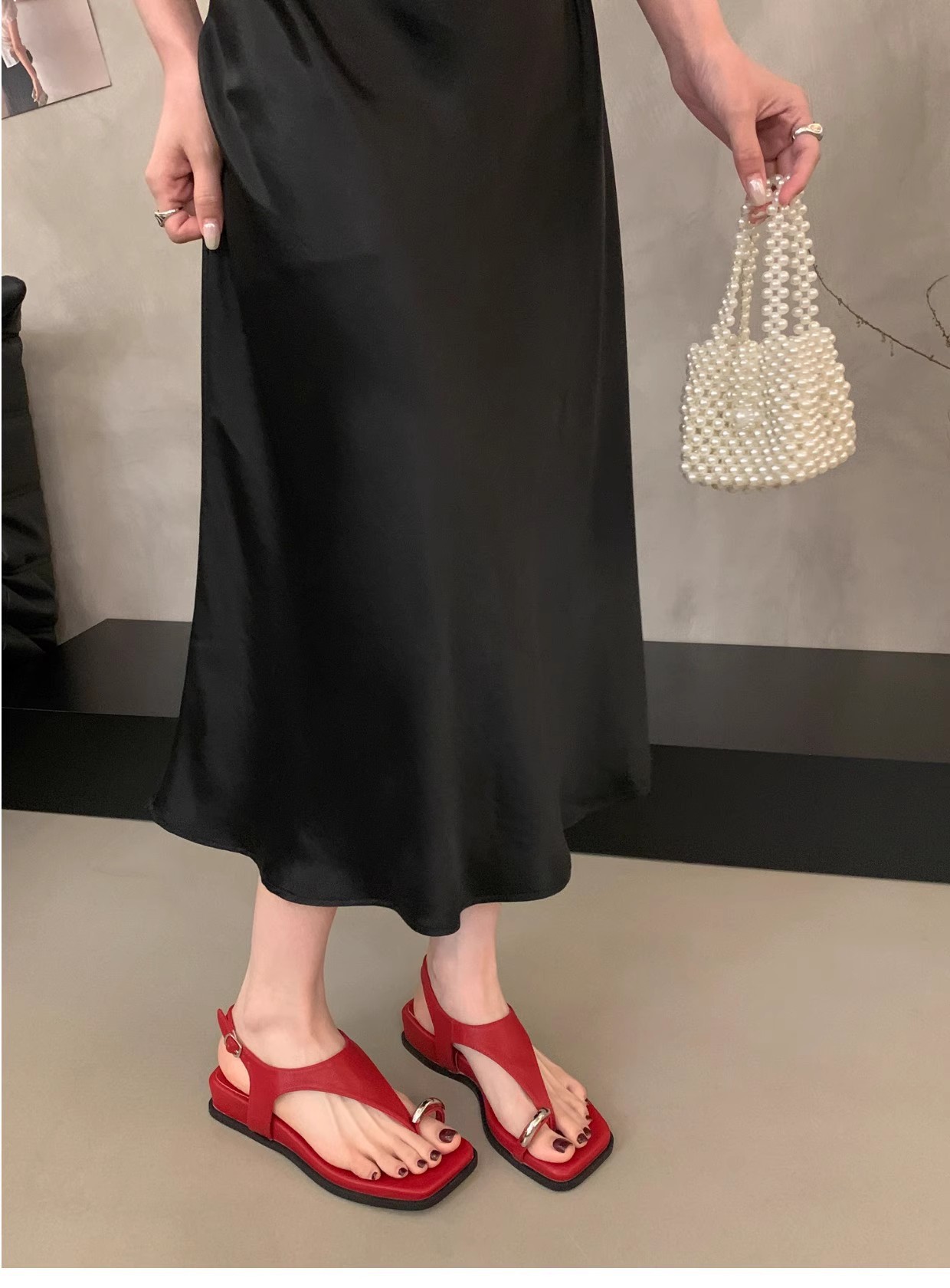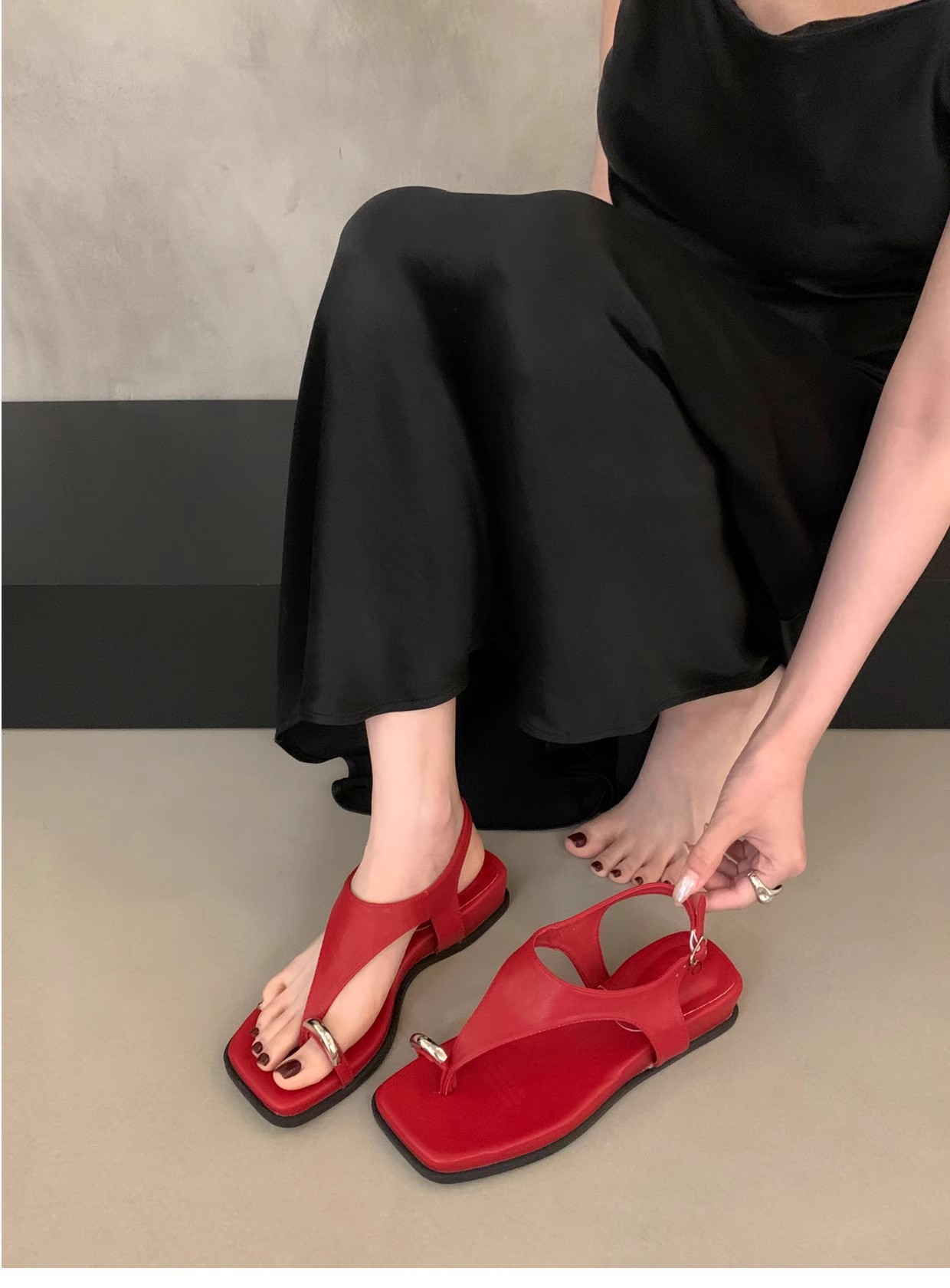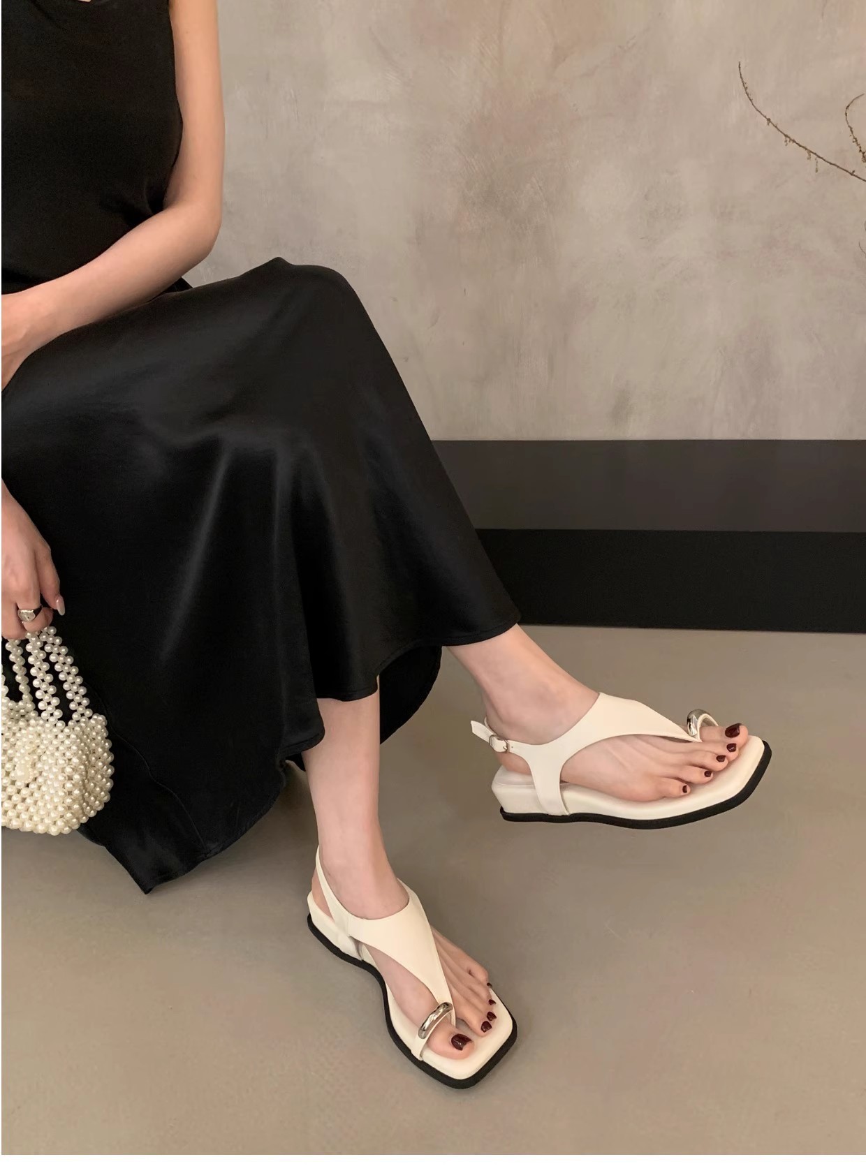 2025년 여름 신상 프렌치 레트로 로마 샌들, 앞코가 빈 샌들, 스퀘어 토 웨지 샌들스토어 가기