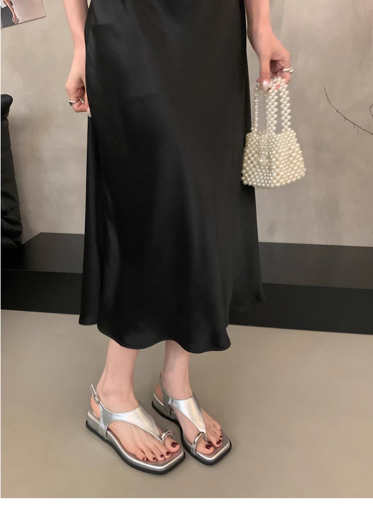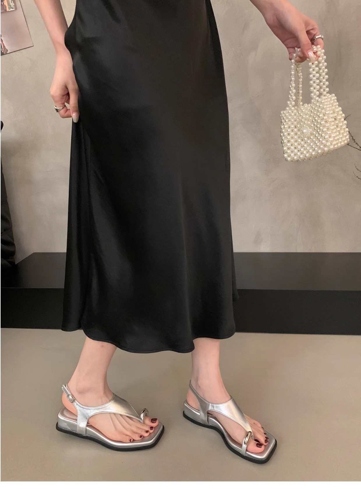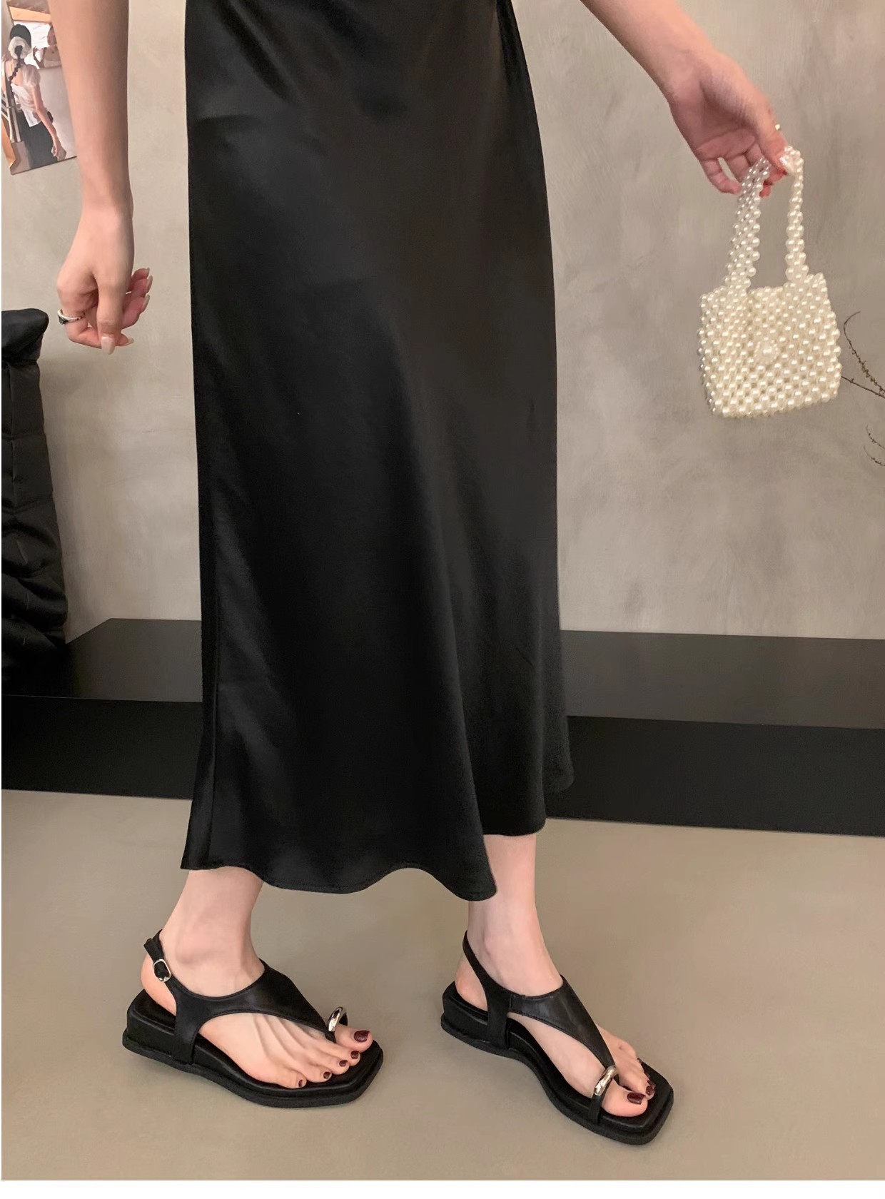 2025년 여름 신상 프렌치 레트로 로마 샌들, 앞코가 빈 샌들, 스퀘어 토 웨지 샌들스토어 가기