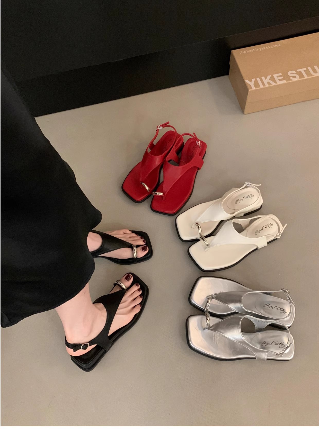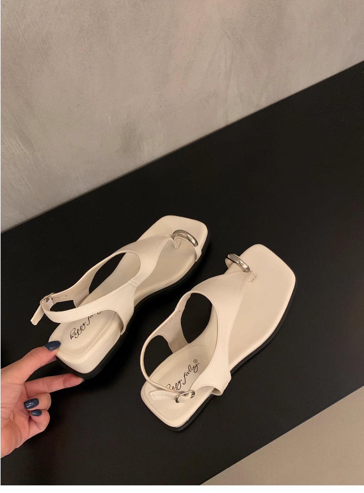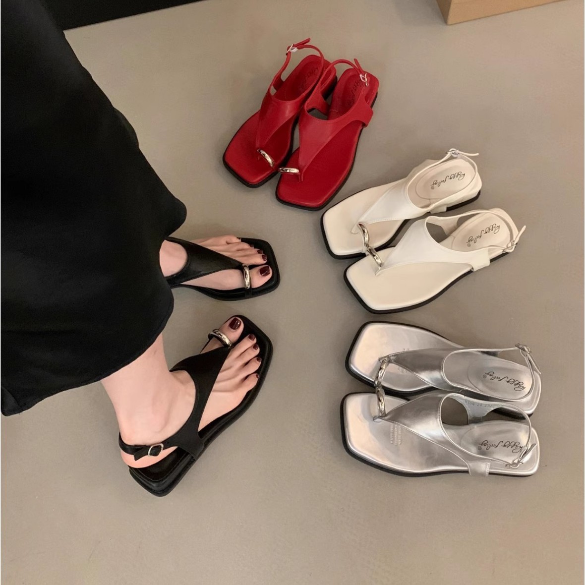 2025년 여름 신상 프렌치 레트로 로마 샌들, 앞코가 빈 샌들, 스퀘어 토 웨지 샌들