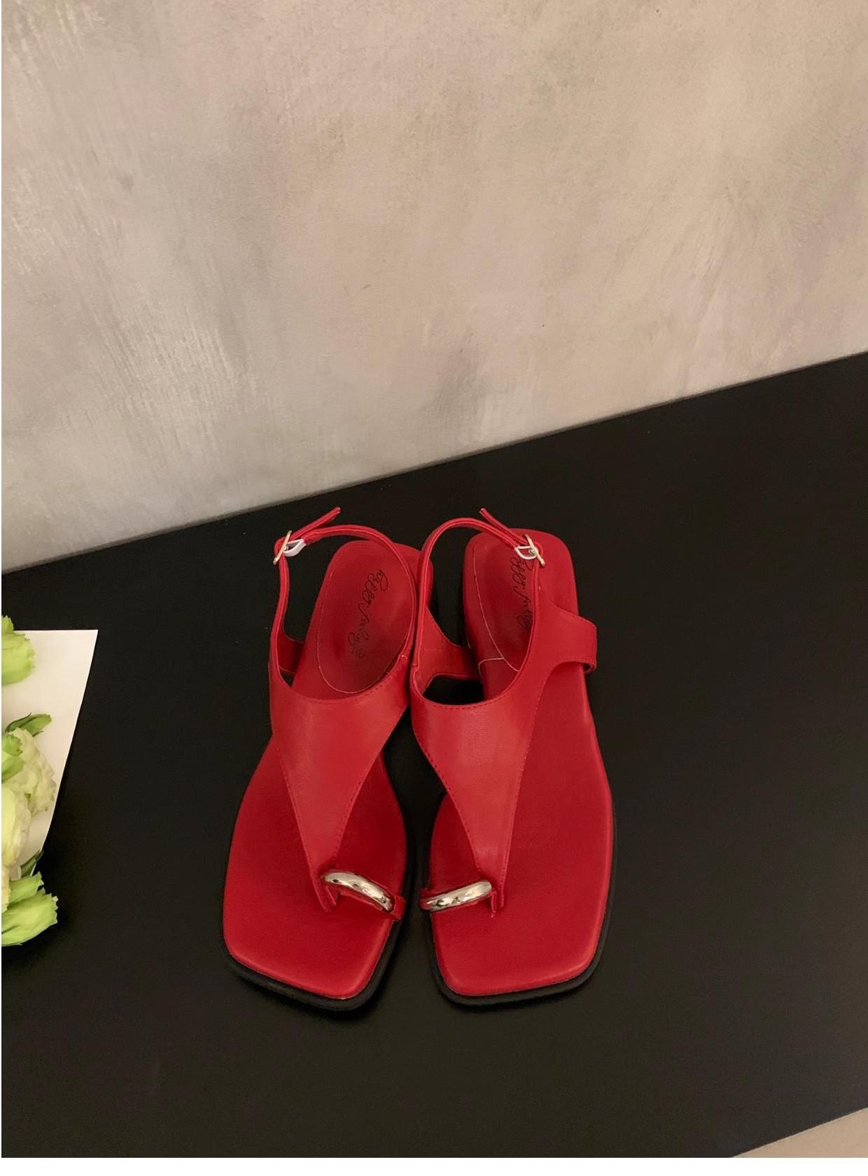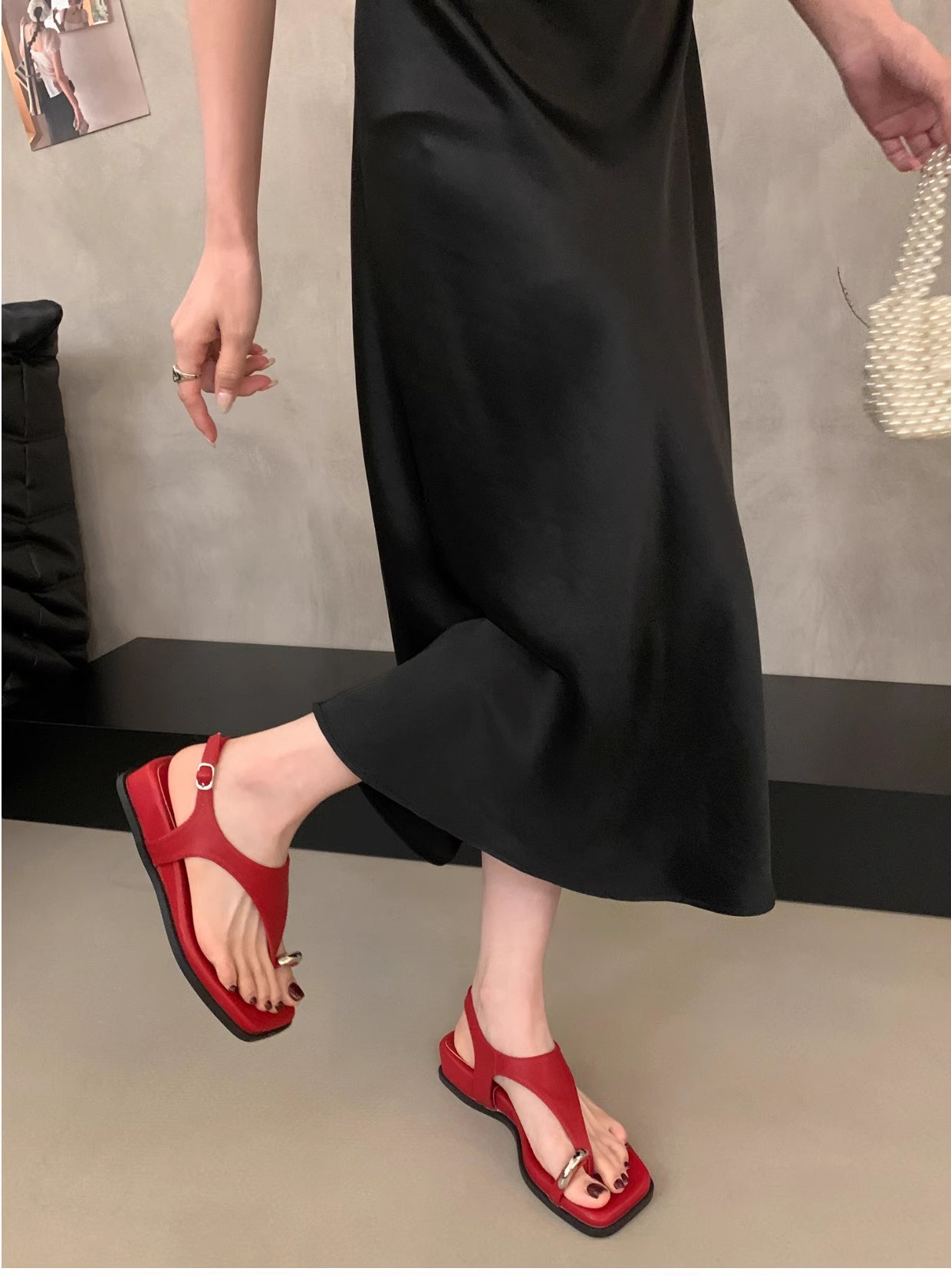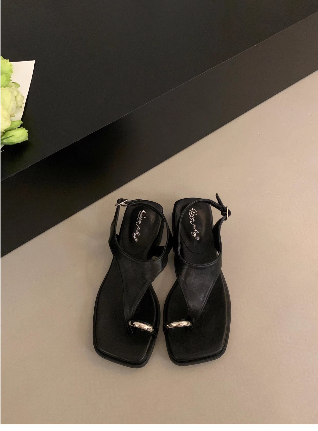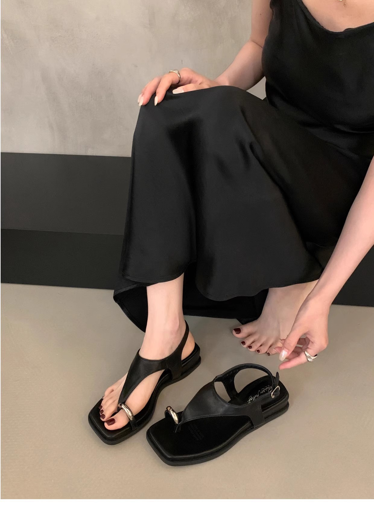 2025년 여름 신상 프렌치 레트로 로마 샌들, 앞코가 빈 샌들, 스퀘어 토 웨지 샌들