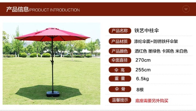 • 2.7m 낚시 센터 컬럼 우산 (버건디)