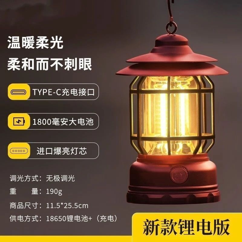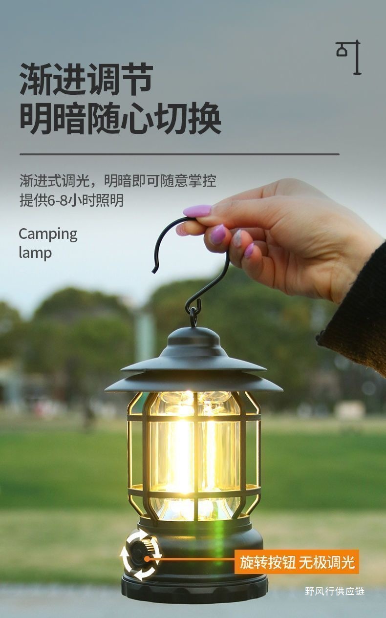 레트로 야외 캠핑 배터리 수명 충전식 조명 슈퍼 긴 캠프 캠핑 충전식 텐트 분위기 말 랜턴 교수형스토어 가기