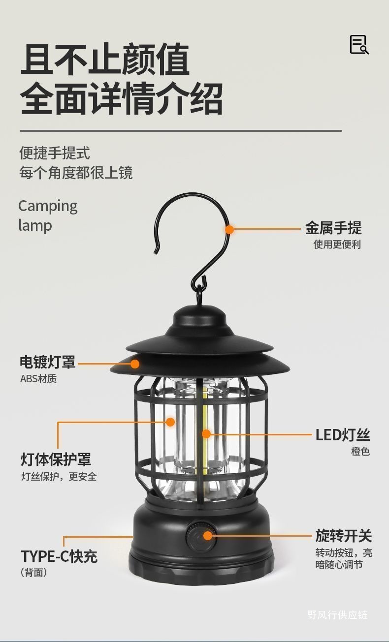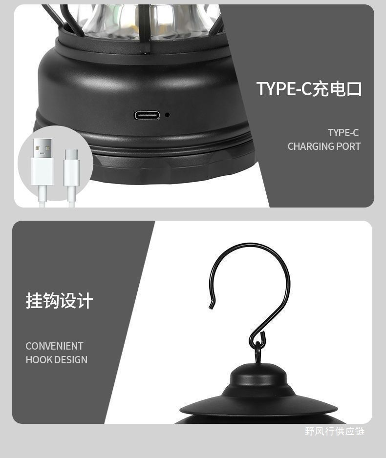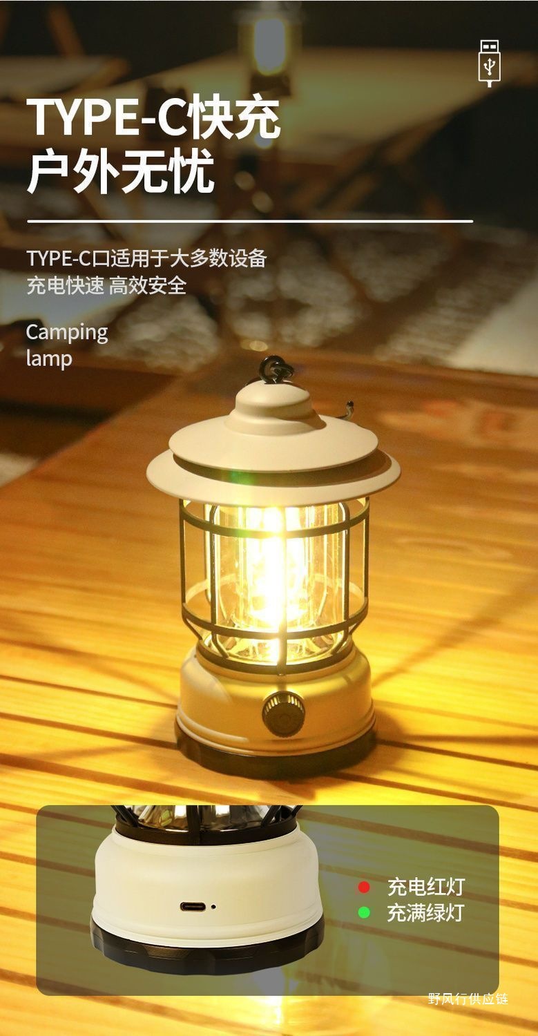 레트로 야외 캠핑 배터리 수명 충전식 조명 슈퍼 긴 캠프 캠핑 충전식 텐트 분위기 말 랜턴 교수형