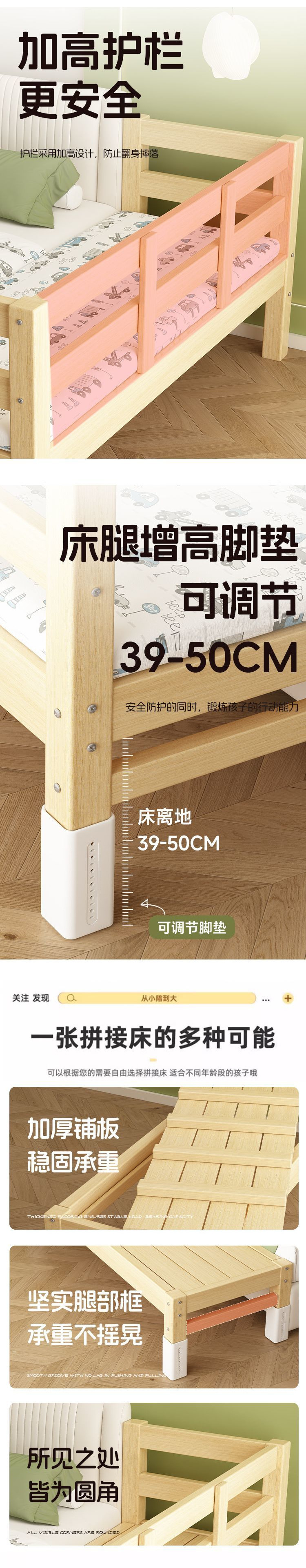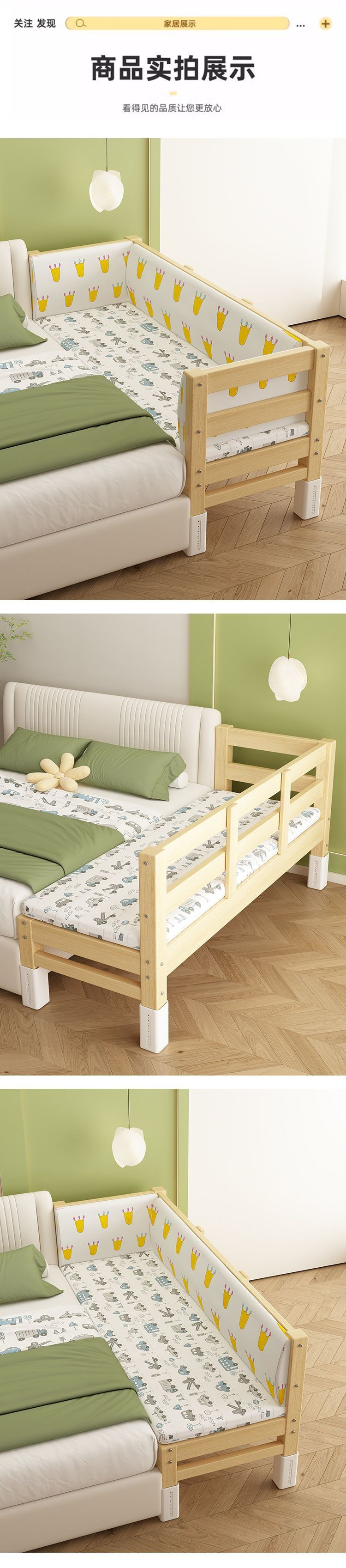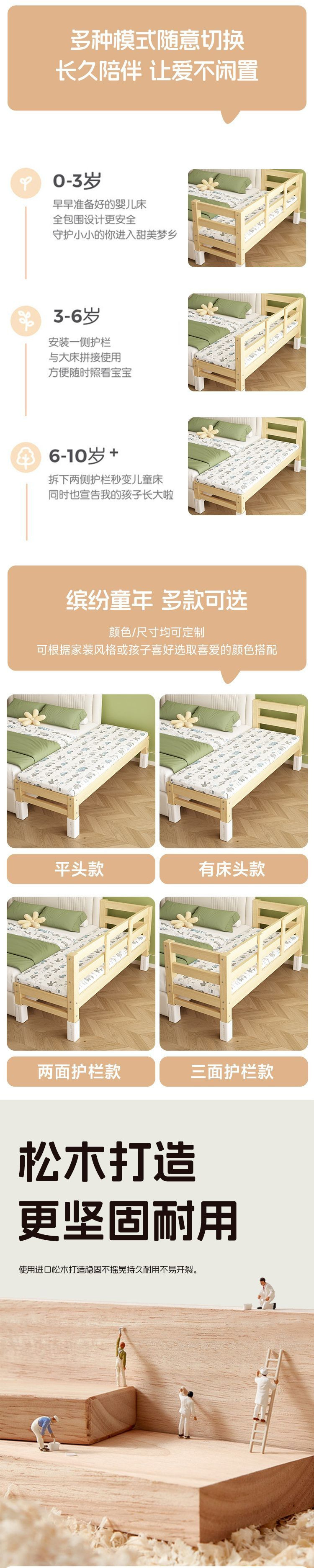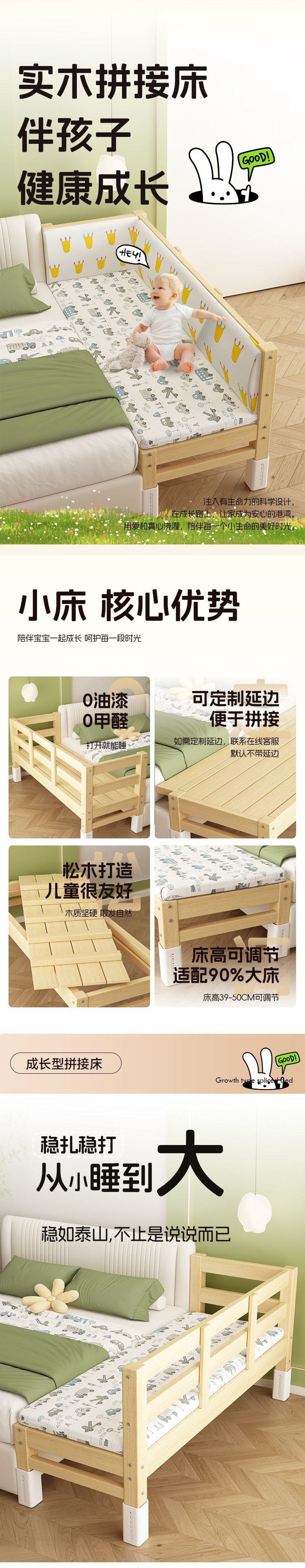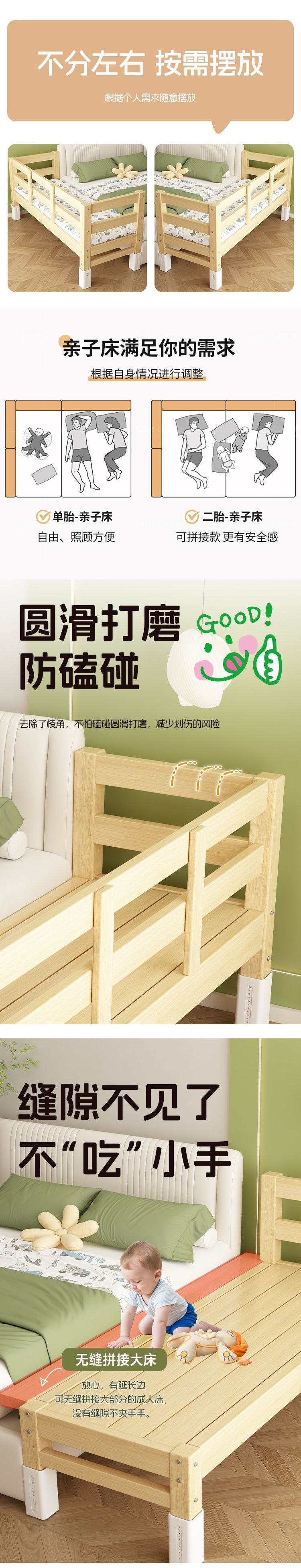 어린이용 접합 침대, 침대 옆 확장 유물, 아기용 평면 침대, 성인이 수면할 수 있는 조절 가능한 원목 유아용 침대