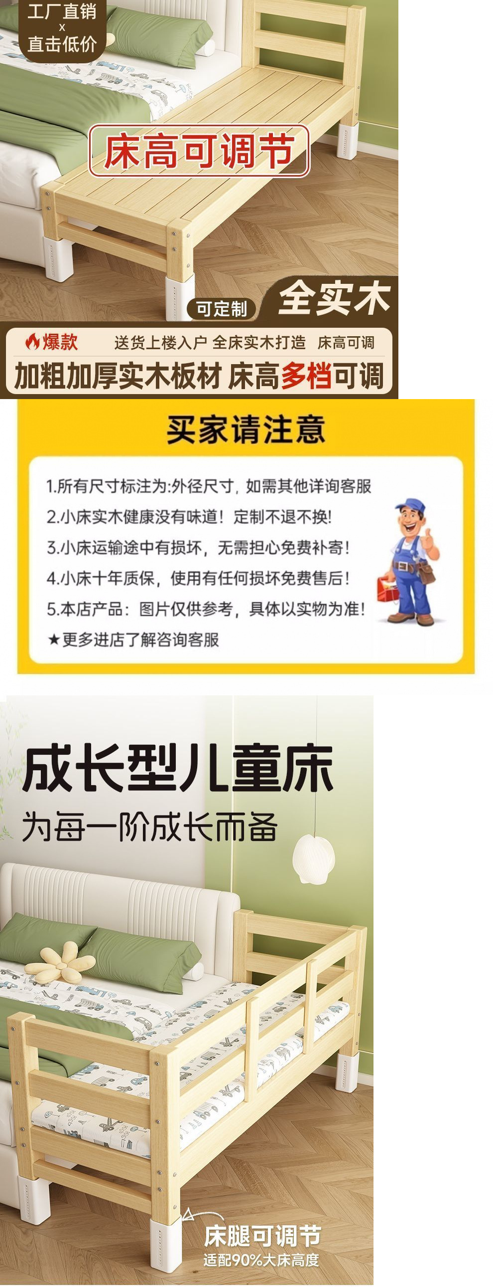 • [높이 조절 가능] 양면 가로 가드레일 + 3E 코코넛 야자 매트리스 + 침대 옆