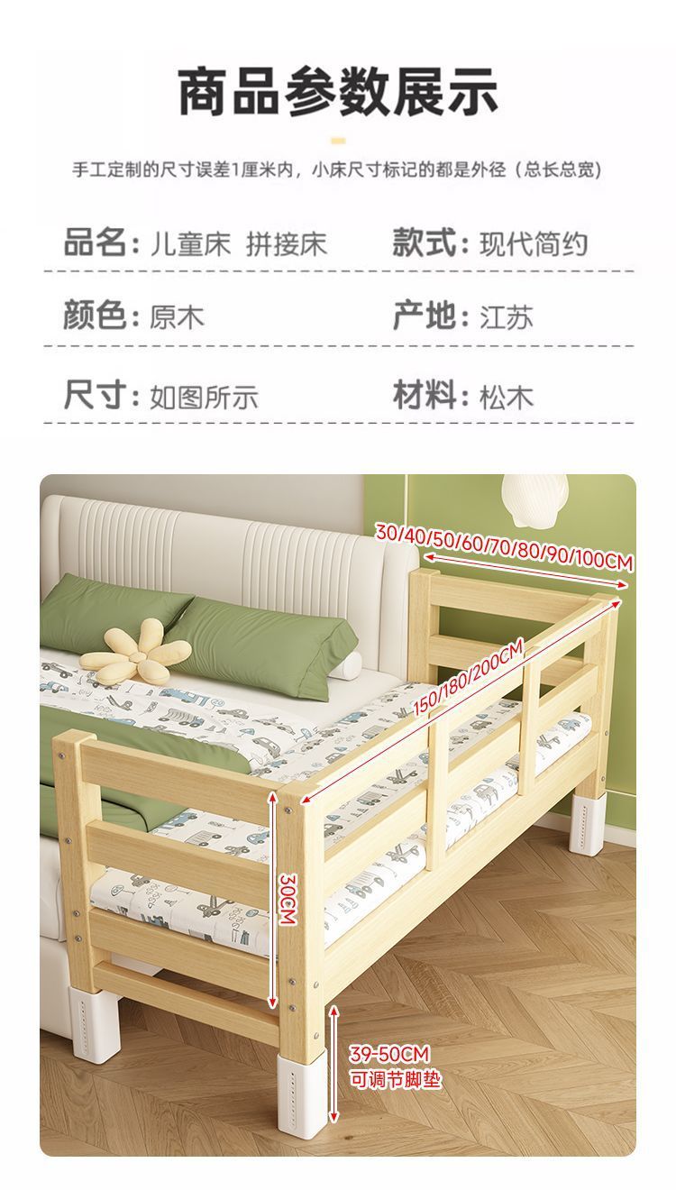 어린이용 접합 침대, 침대 옆 확장 유물, 아기용 평면 침대, 성인이 수면할 수 있는 조절 가능한 원목 유아용 침대스토어 가기