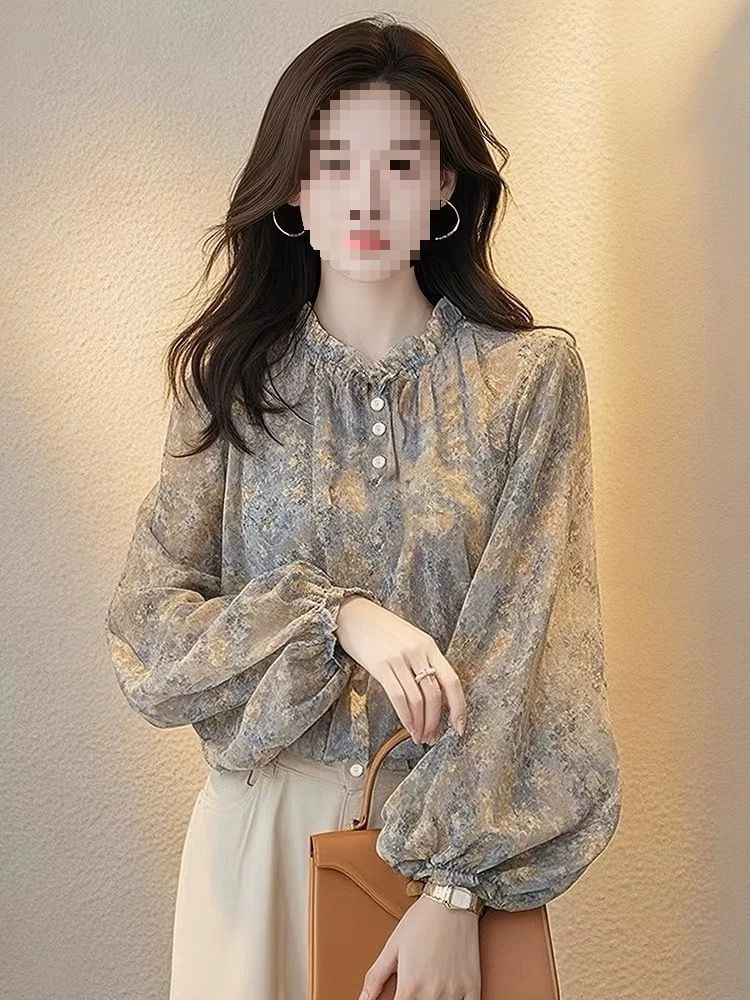 2025년 여름 프렌치 플로럴 쉬폰 탑, 핫 스타일, 독특하고 시크한 고급 긴팔 셔츠 제조업체 공장스토어 가기