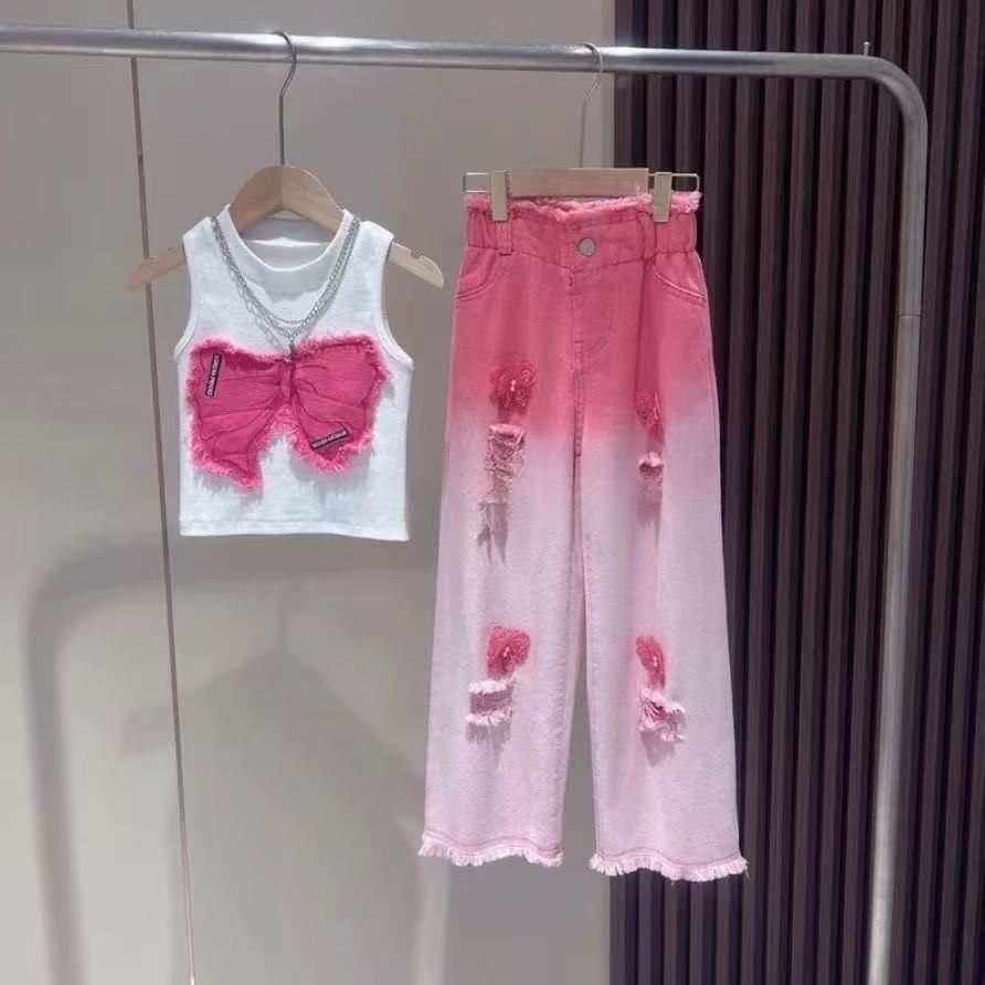 • 흰색 패치 나비 조끼 + 나비 찢어진 바지
