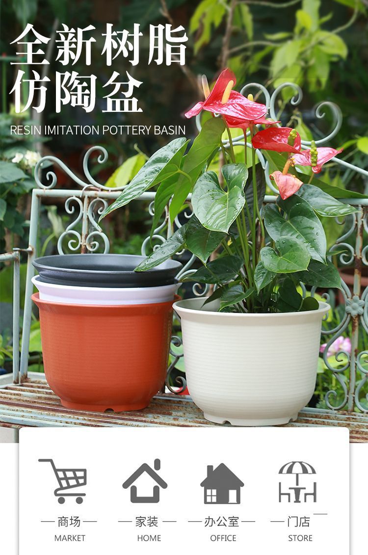 두꺼운 초대형 모조 도자기 화분, 녹색 식물 플라스틱 수지 원형 실내 식물 환경 친화적인 과일 나무 화분 신규스토어 가기
