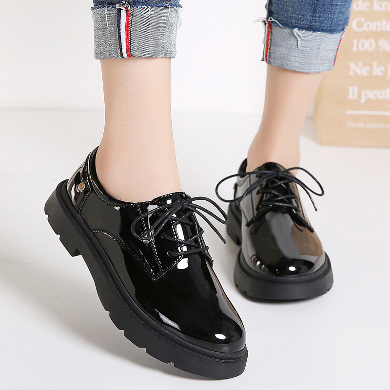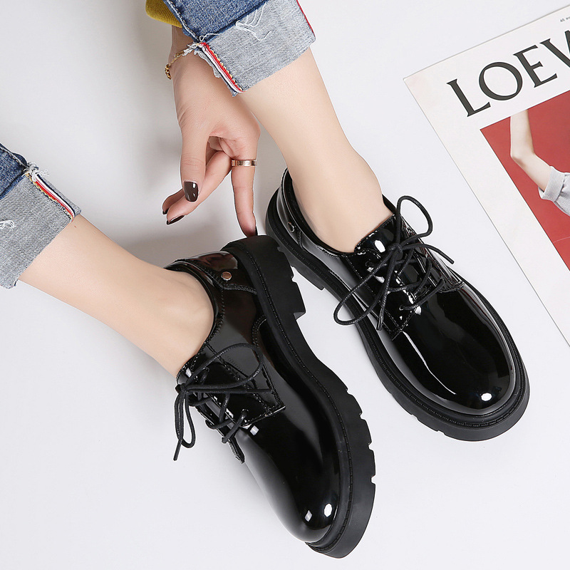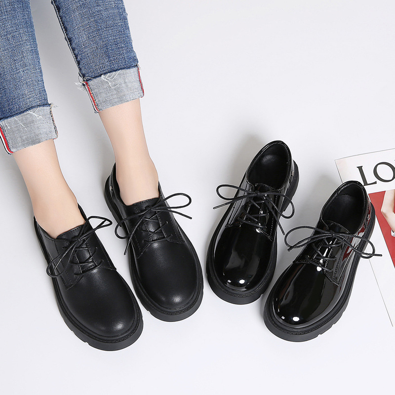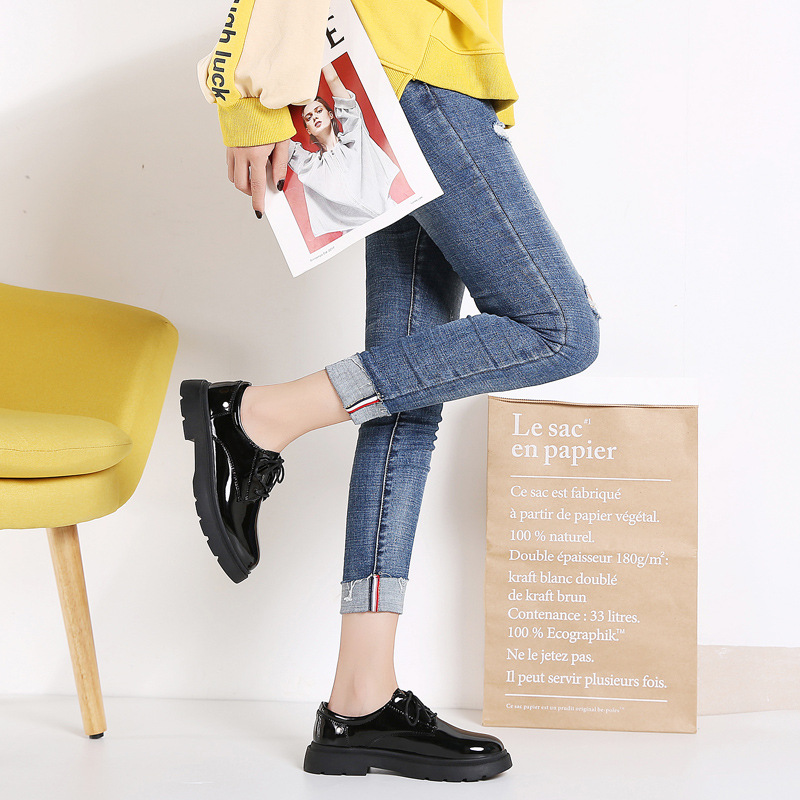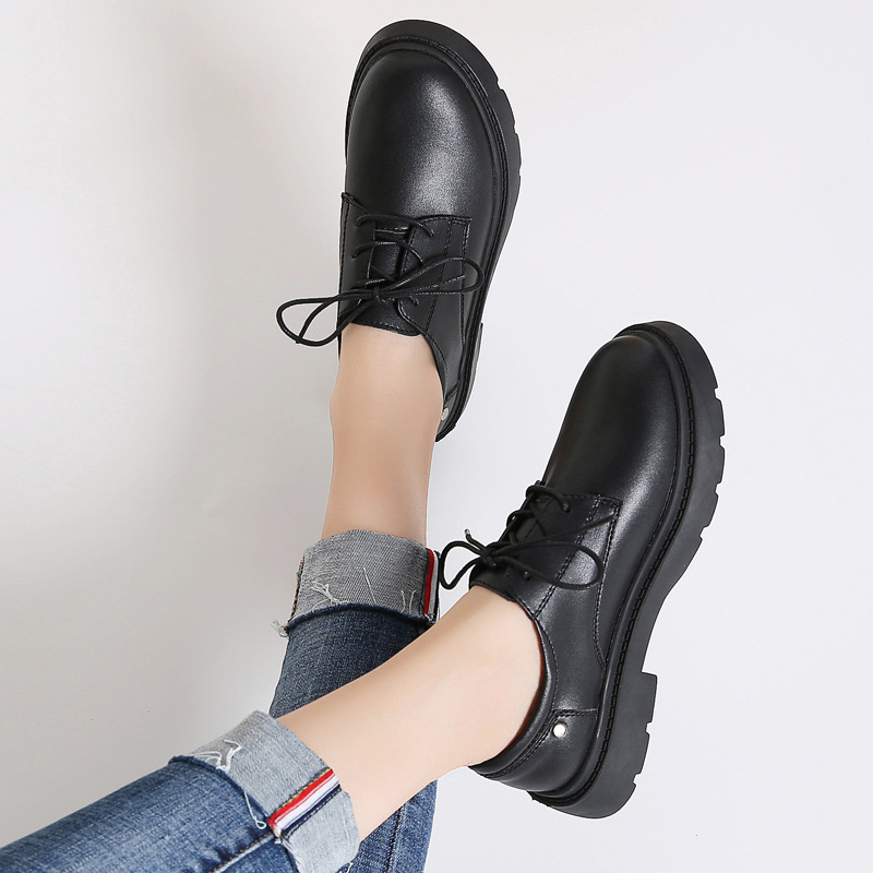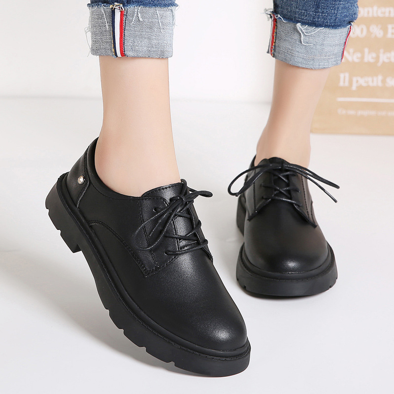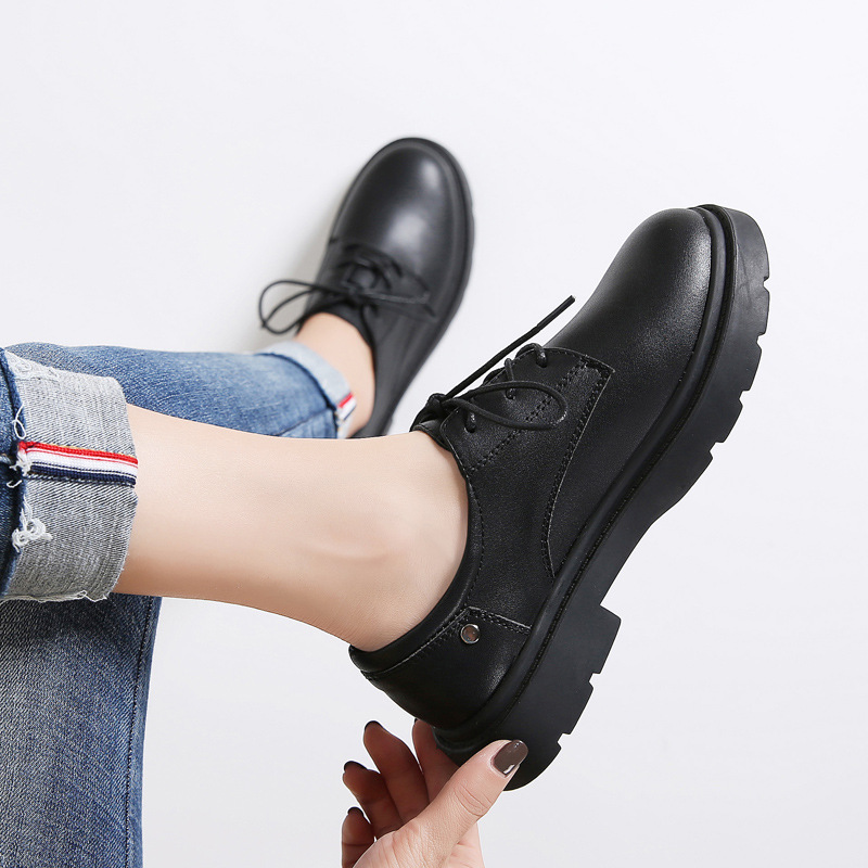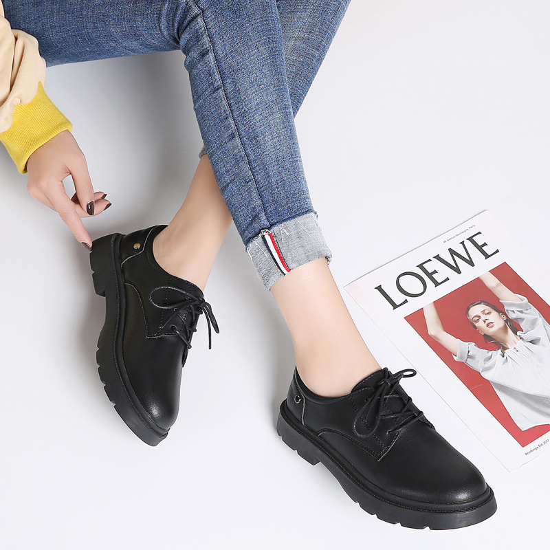 새로운 봄, 가을 영국 스타일 블랙 캐주얼 가죽 신발 여성 비즈니스 정장 큰 머리 작업 유행 신발 단일 신발 작은 가죽 신발스토어 가기