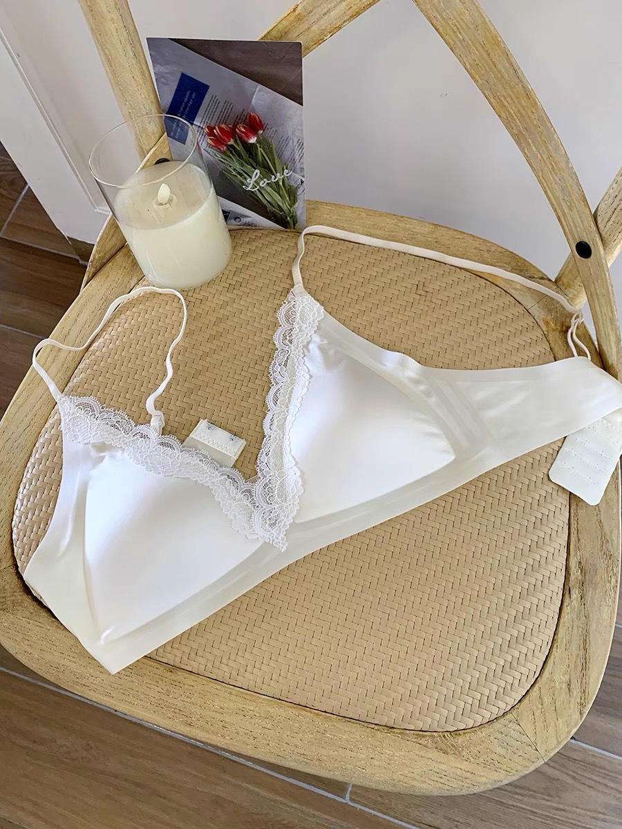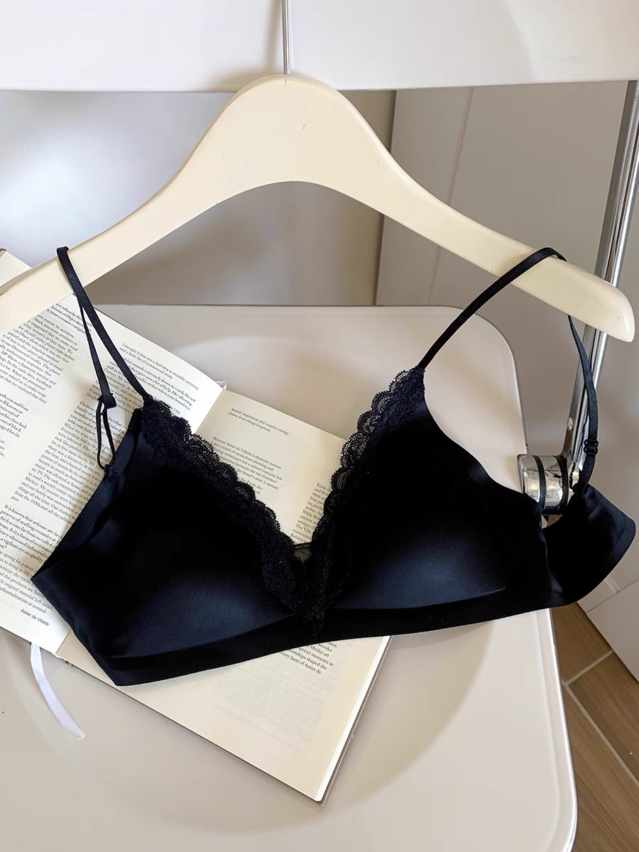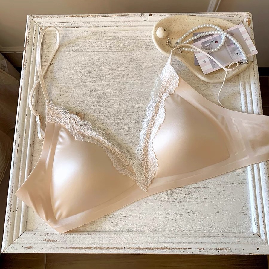 여성용 프렌치 트라이앵글 컵 속옷, 레이스 여름 얇은 와이어 프리 작은 가슴 푸시 업 와이어 프리 통기성 브라스토어 가기