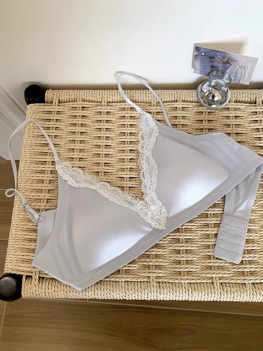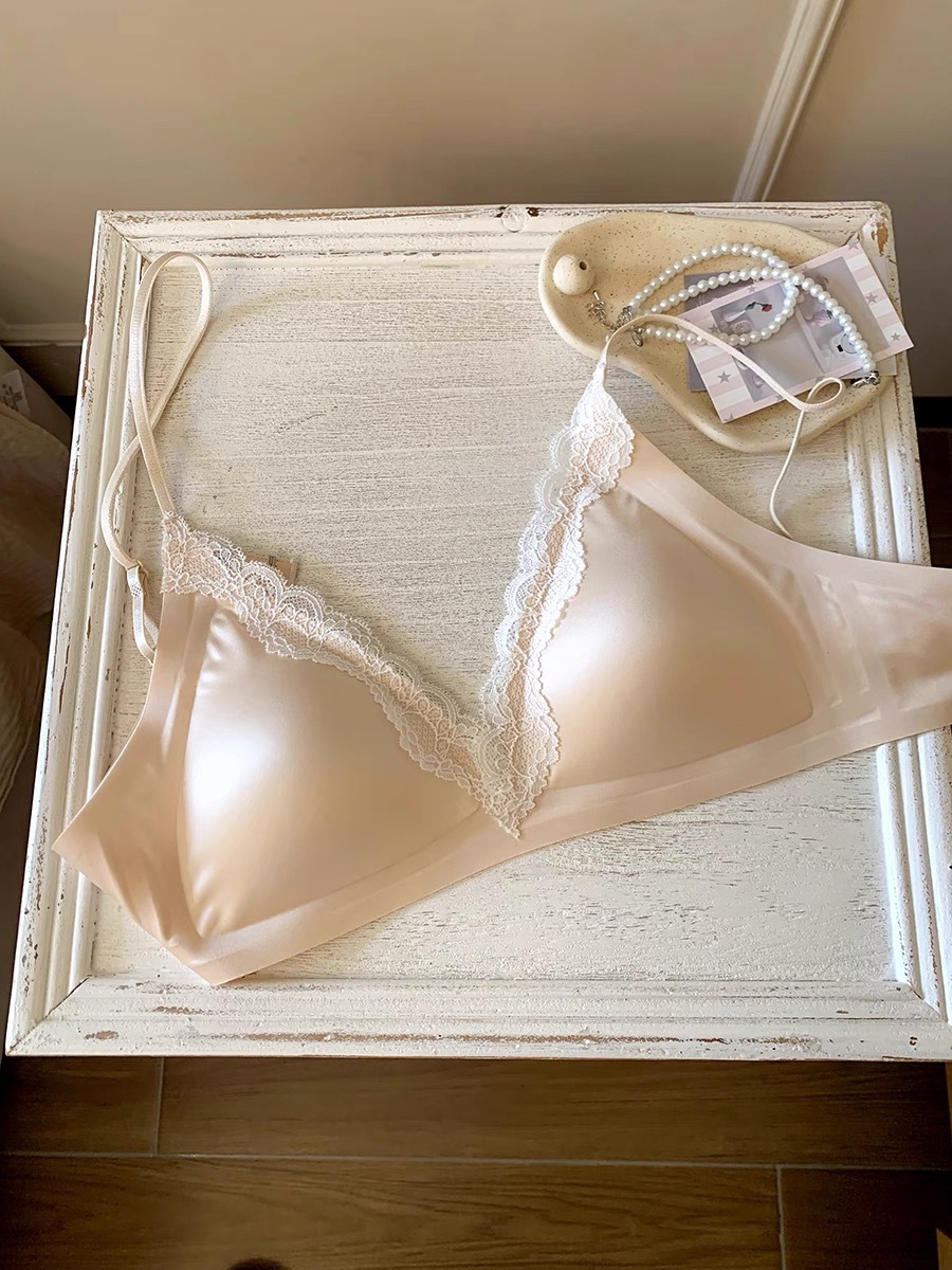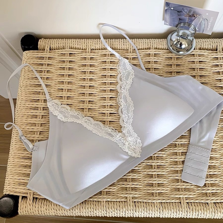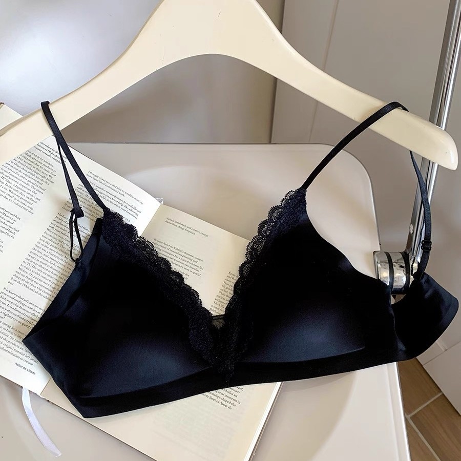 여성용 프렌치 트라이앵글 컵 속옷, 레이스 여름 얇은 와이어 프리 작은 가슴 푸시 업 와이어 프리 통기성 브라스토어 가기