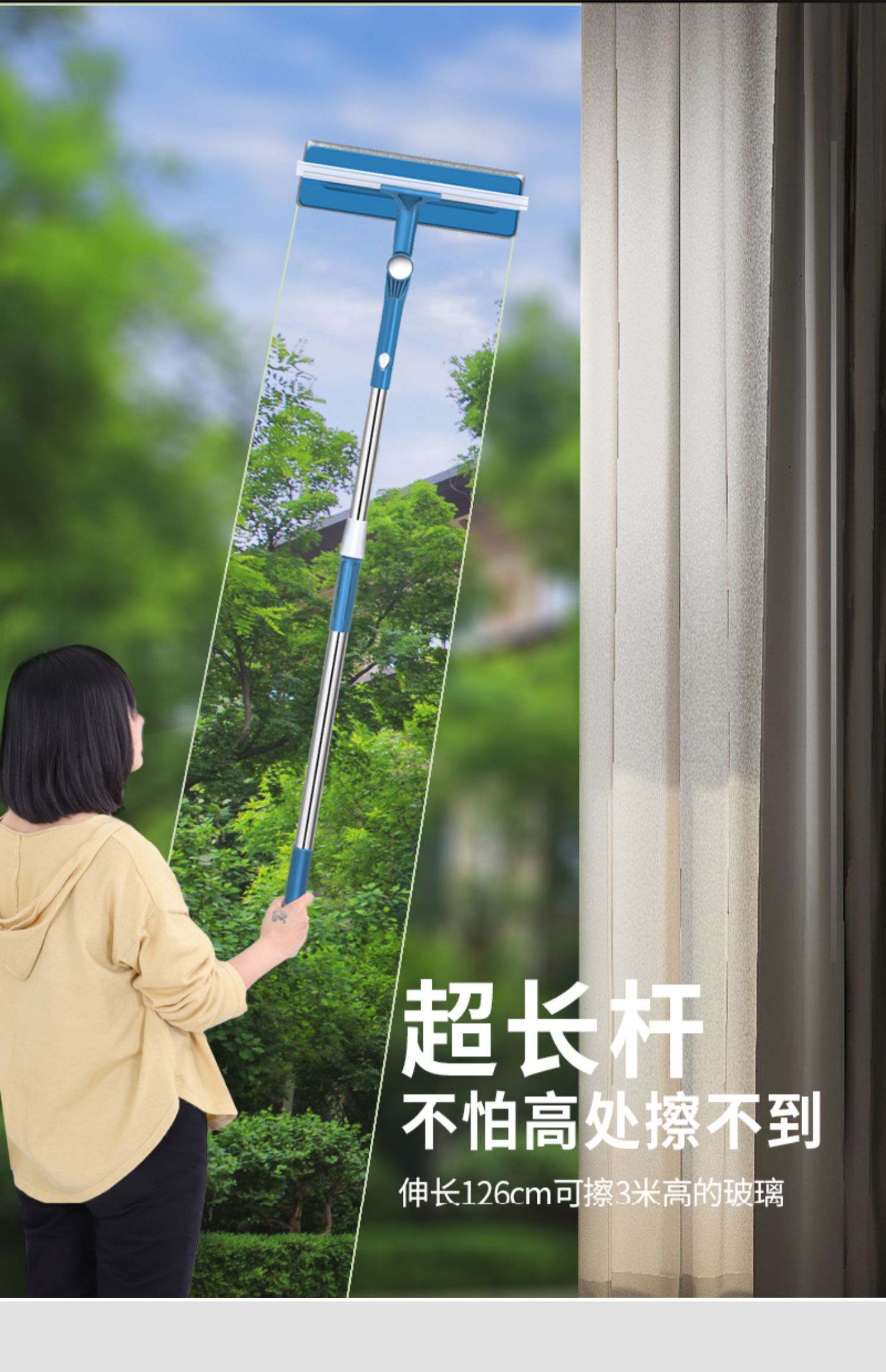 가정용 다기능 유리 청소기 텔레스코픽 막대 양면 창 청소 스크레이퍼 고층 건물 청소 창 도구 Na You스토어 가기