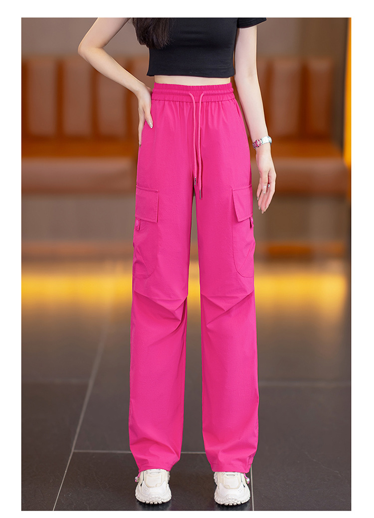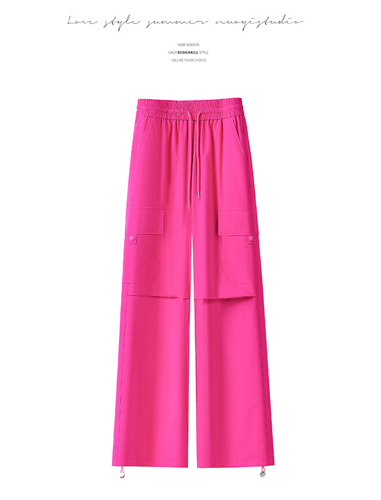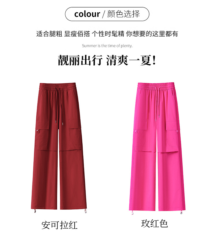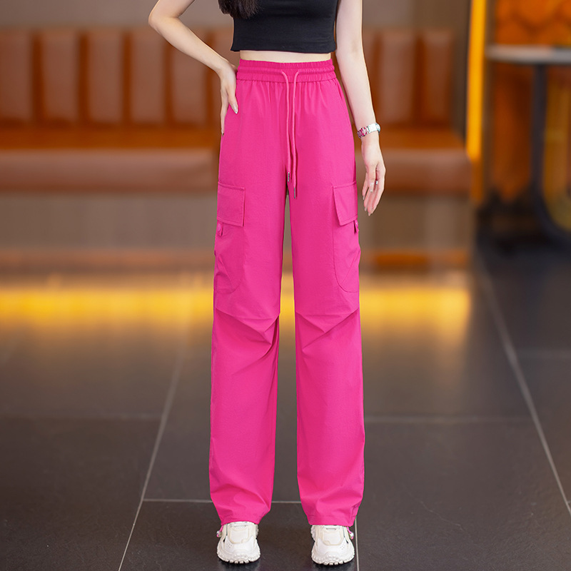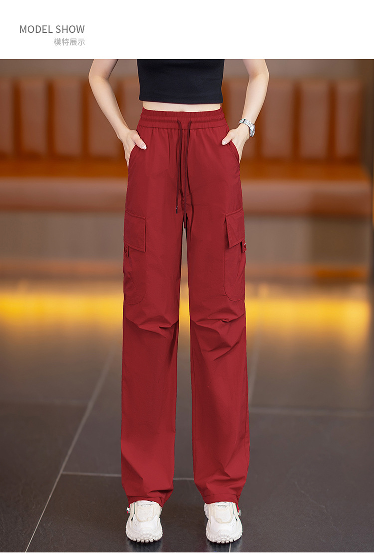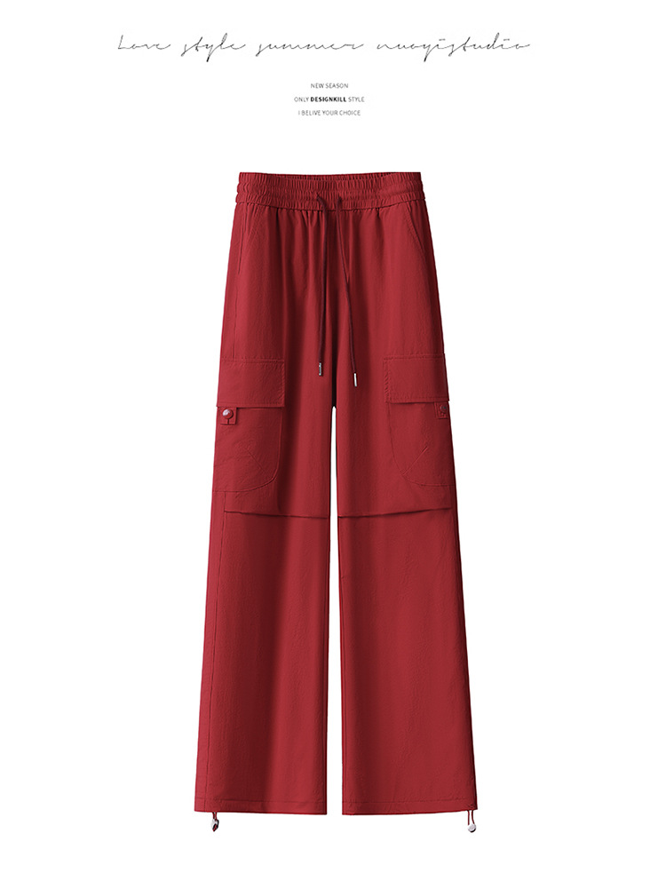 로즈 레드 오버올 여성 여름 얇은 2025 새로운 공수 군인 미국식 속건성 아이스 실크 등산 와이드 레그 스포츠 바지